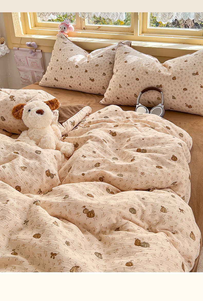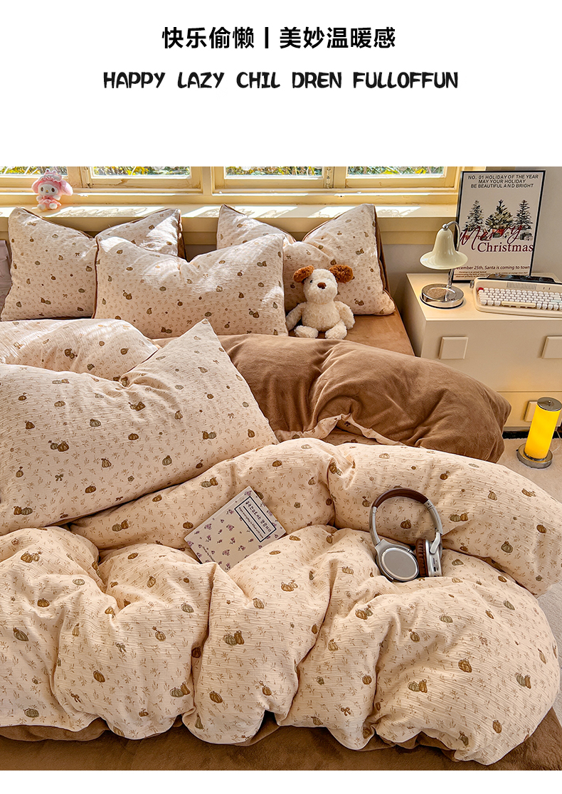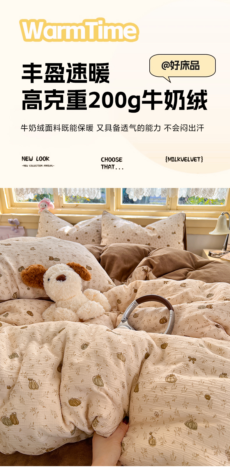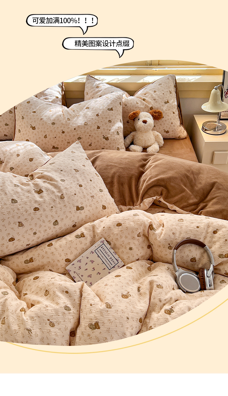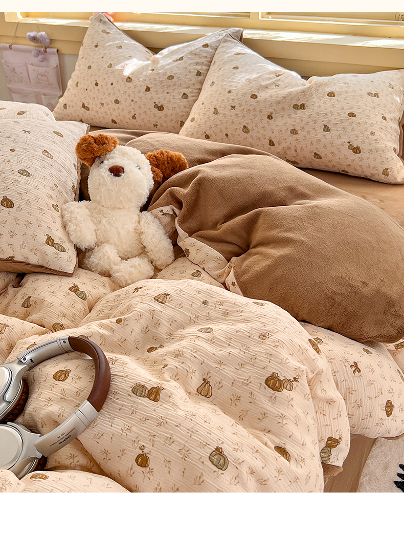 瑞钰 2025新款A版三层纱B版牛奶绒四件套系列 南瓜派