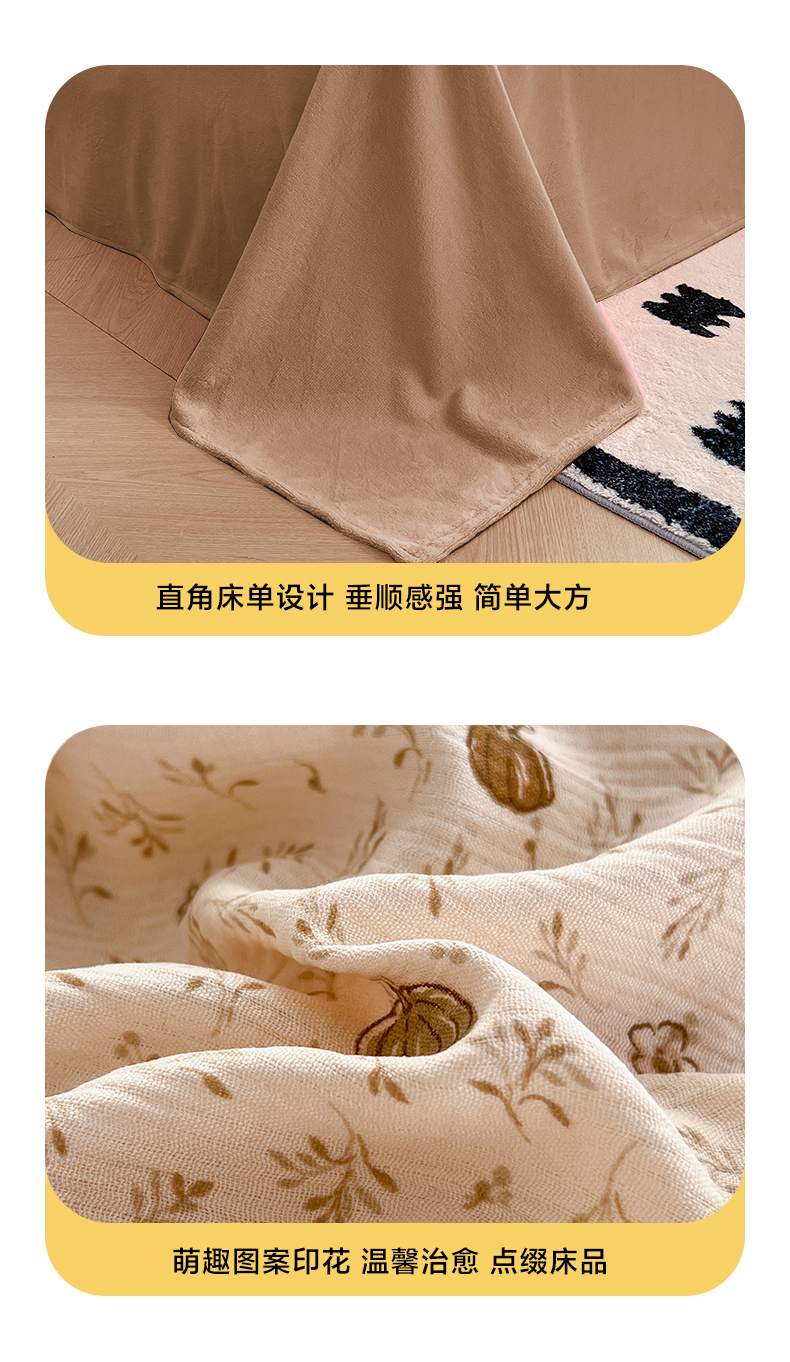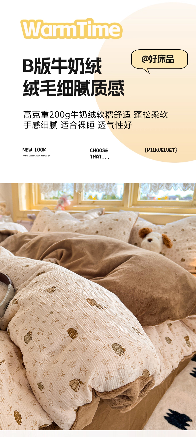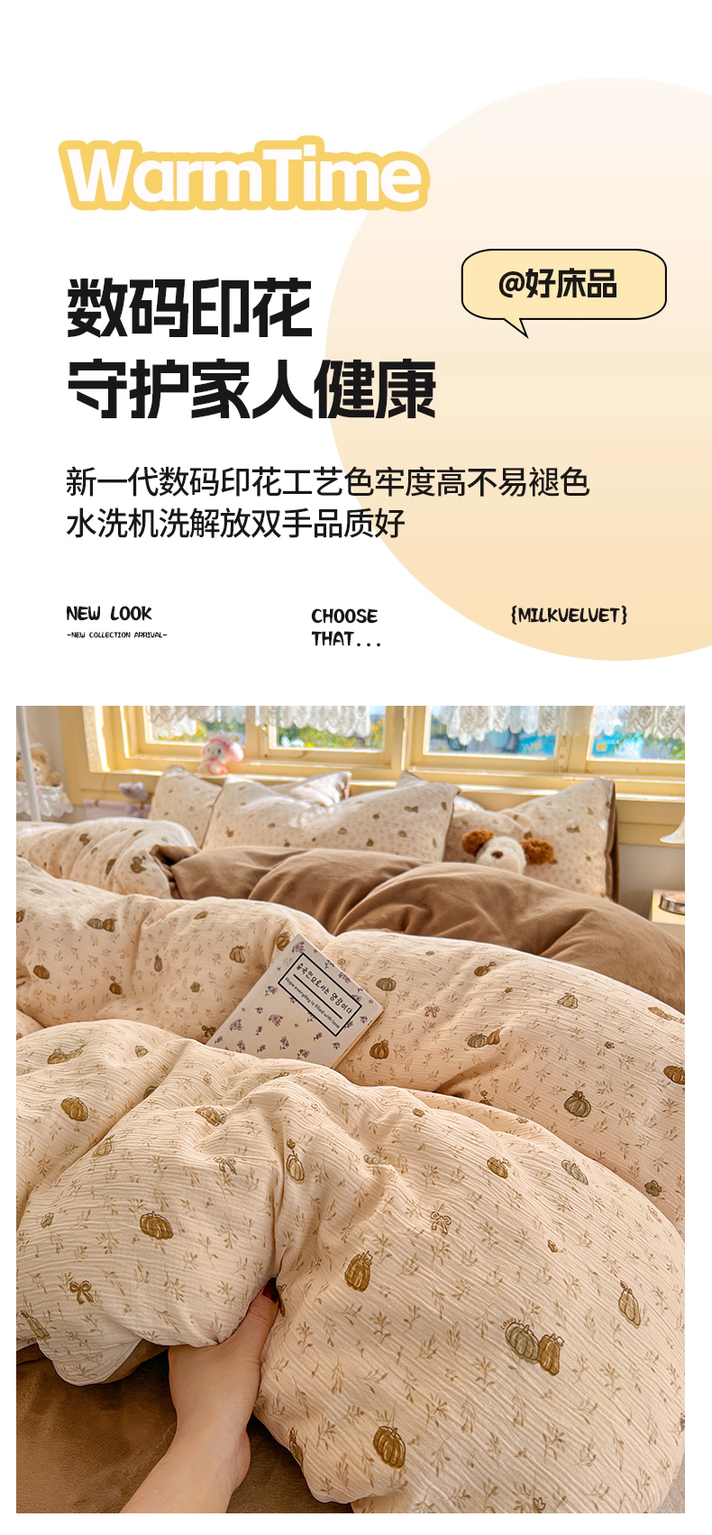 商品名称:瑞钰 2025新款A版三层纱B版牛奶绒四件套系列 南瓜派