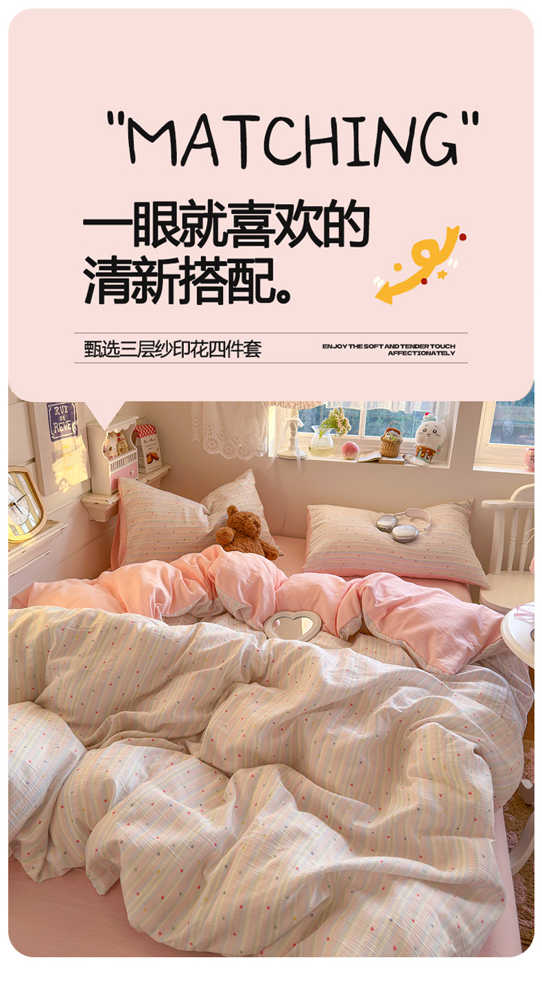 当前位置: 91家纺网 > 商品网购 > 床品套件 > 四件套 > 其它四件套 > 玉海棠家纺 2025新款甄选三层纱印花四件套 彩虹世界