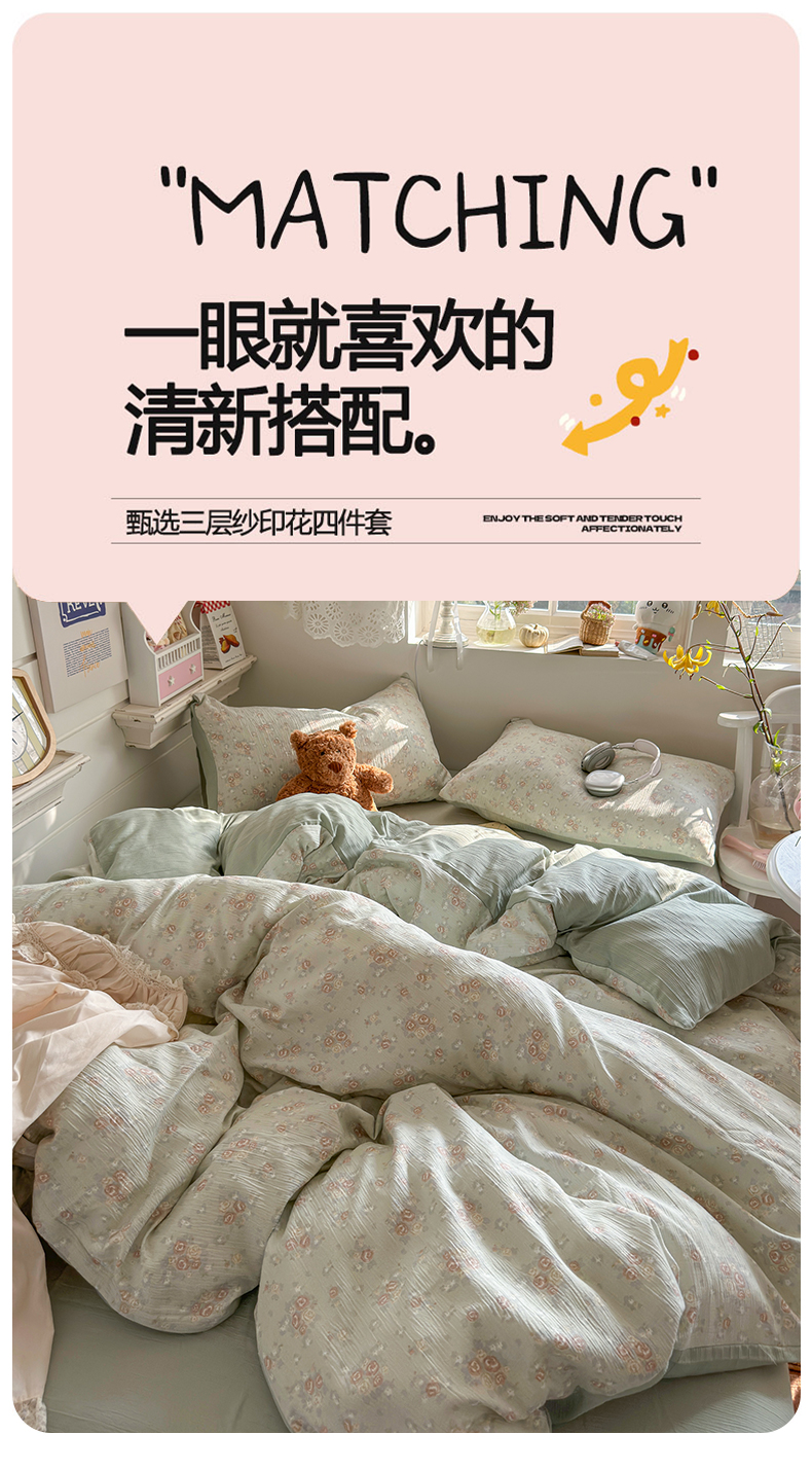 当前位置: 91家纺网 > 商品网购 > 床品套件 > 四件套 > 其它四件套 > 玉海棠家纺 2025新款甄选三层纱印花四件套 玫瑰夜-绿