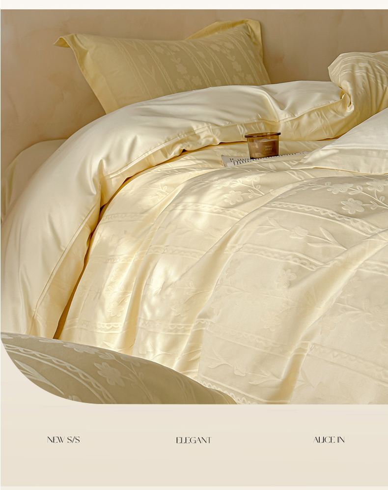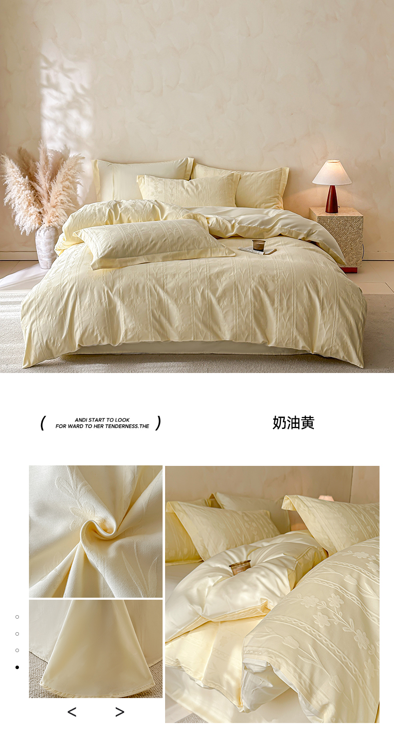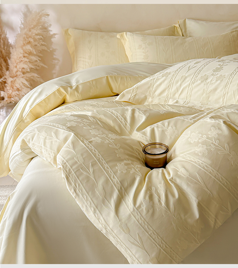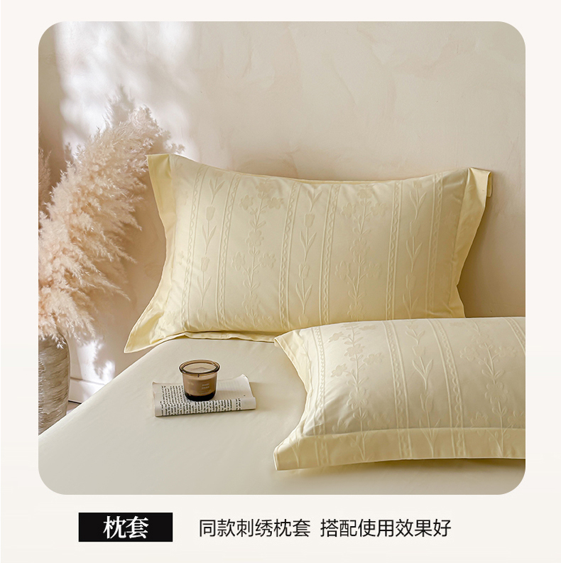 当前位置: 91家纺网 > 商品网购 > 床品套件 > 四件套 > 长绒棉四件套 > 禾时 2026新款春夏全棉长绒棉立体提花四件套-花屿 奶油黄