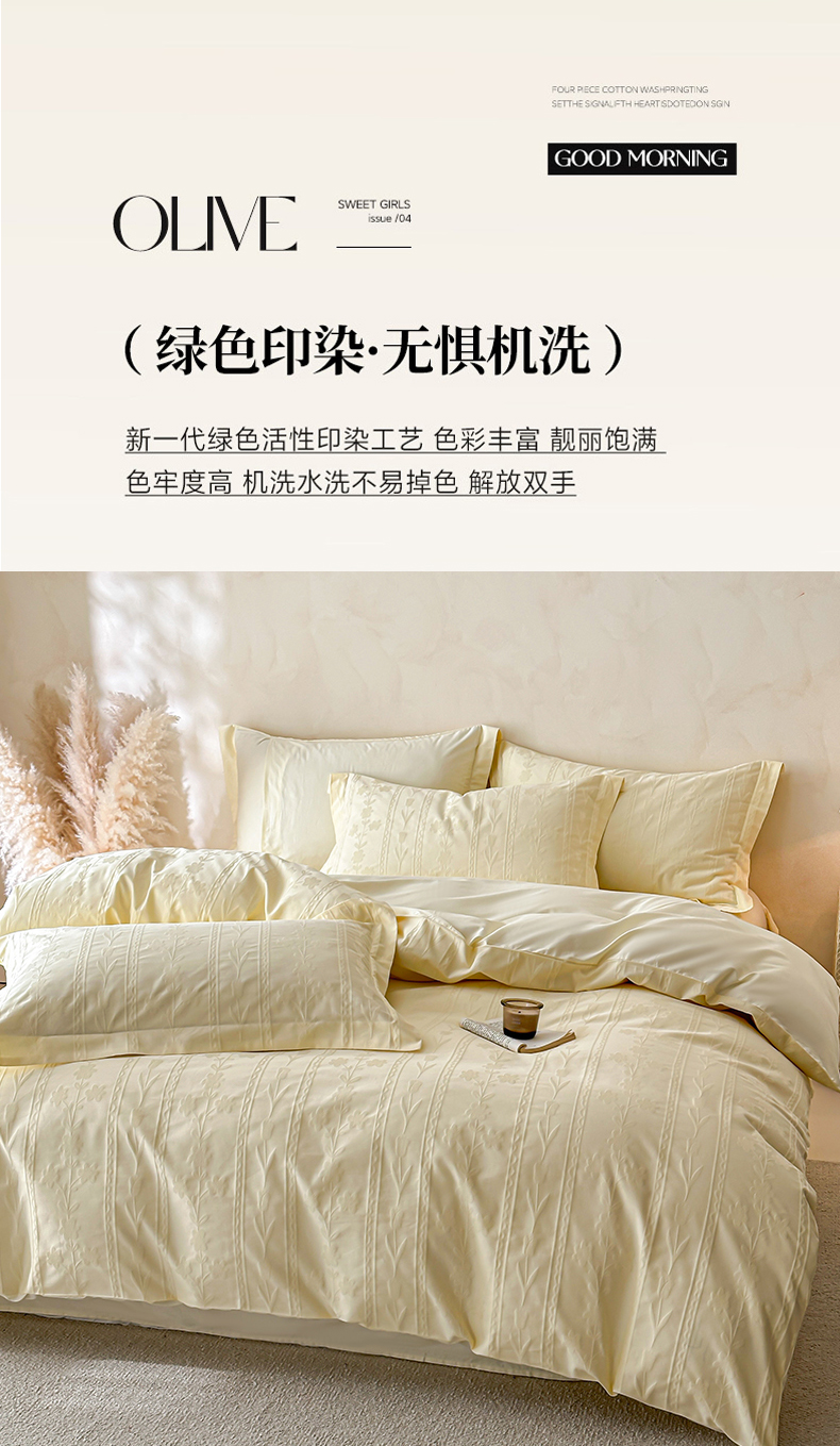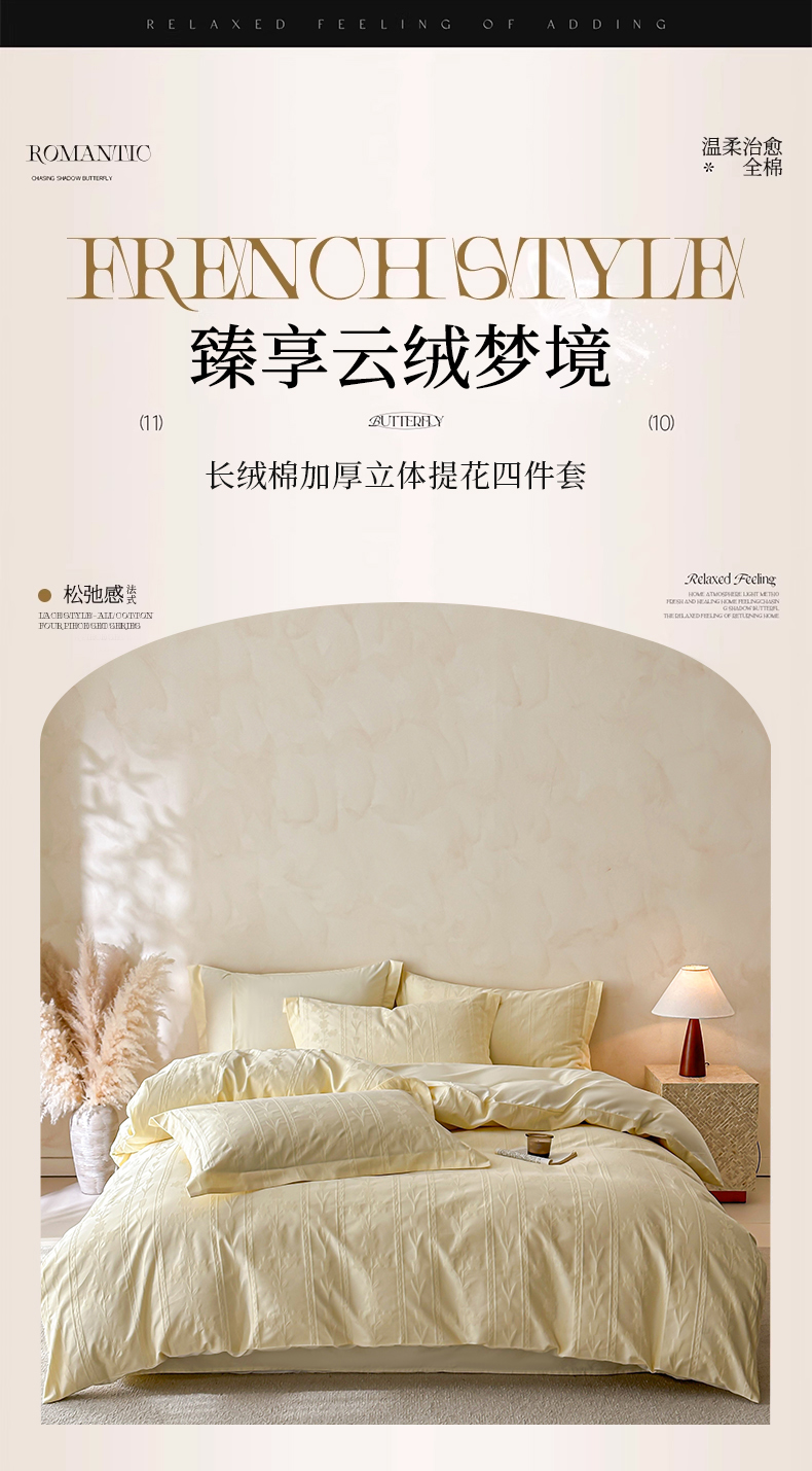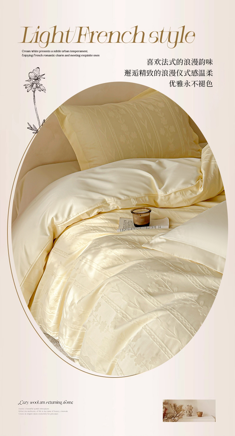 当前位置: 91家纺网 > 商品网购 > 床品套件 > 四件套 > 长绒棉四件套 > 禾时 2026新款春夏全棉长绒棉立体提花四件套-花屿 奶油黄