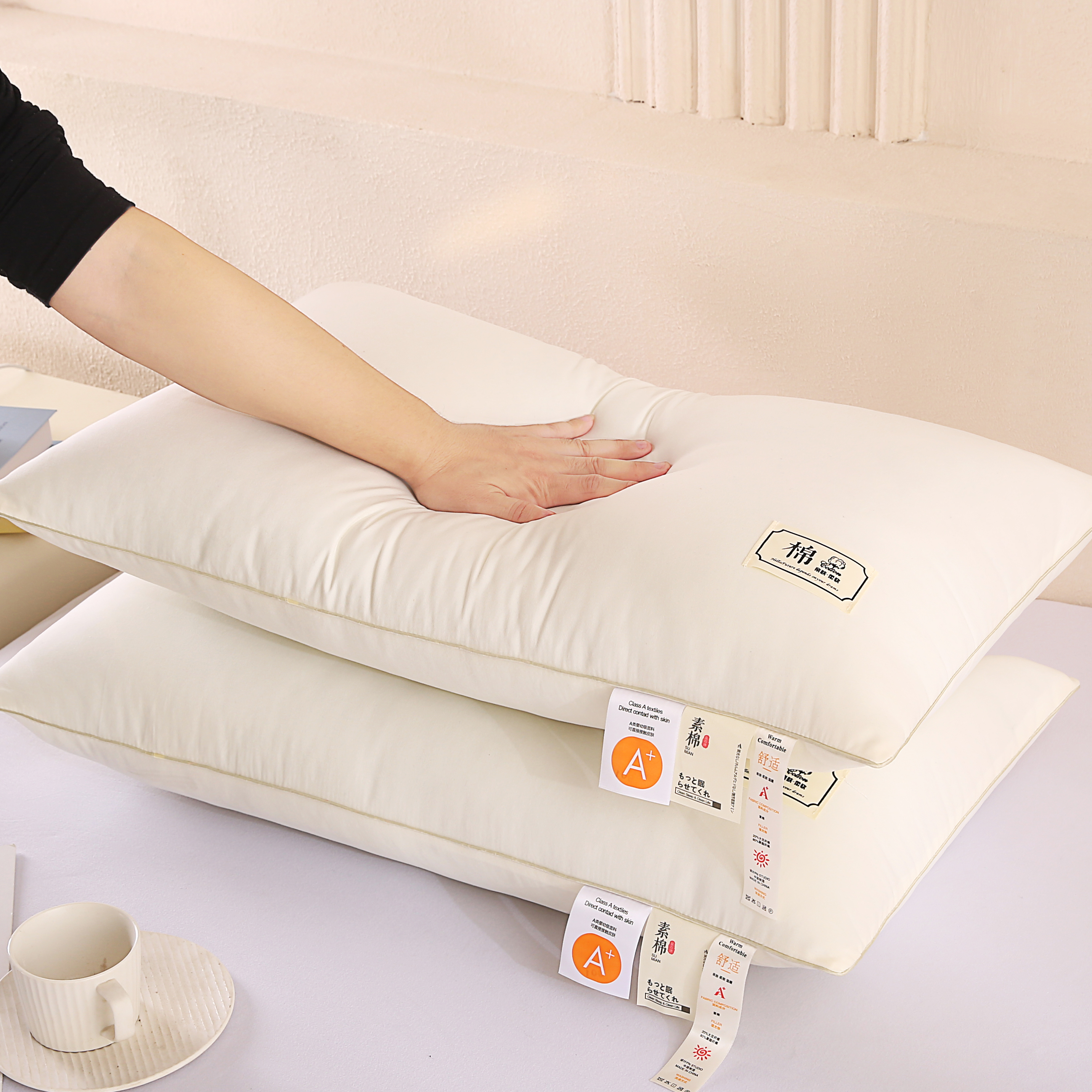 商品名称:永乐枕芯 2025新款A类原生态素棉枕原棉酒店枕大豆枕护颈椎成人学生枕枕头枕芯 白色单边高枕
