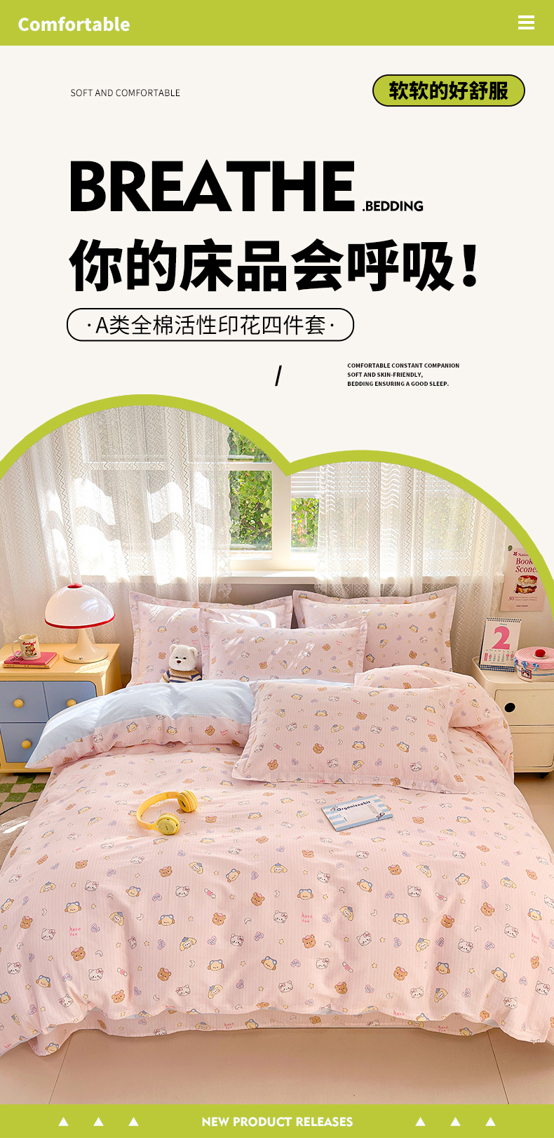 • 91家纺网 家纺一手货源 找家纺 (总)拾物记 2026新款第一批12868A类全棉单品床笠系列(床笠宽度预留10厘米缩水尺寸, 90x200床笠高度15厘米,适合4-15厘米学生床垫使用,其他尺寸床笠高28cm 适合4-28厘米,森林伙伴,挽星河,爱心喵,彩虹兔,草莓小狗,乘风宇宙,刺绣潮声,点点森林熊,粉粉猫咪酱,滚滚绣球团,花漫歌,简笔小汪,镜子海洋粉,开心派对,快乐宇航员,蓝星动物园,美梦花园,咪咕日常,太空卫士,太空熊,糖果幼儿园,糖纸童年,甜蜜纪念日,星际仔仔,星星柯基,星星童话园,元气小布,云间甜梦