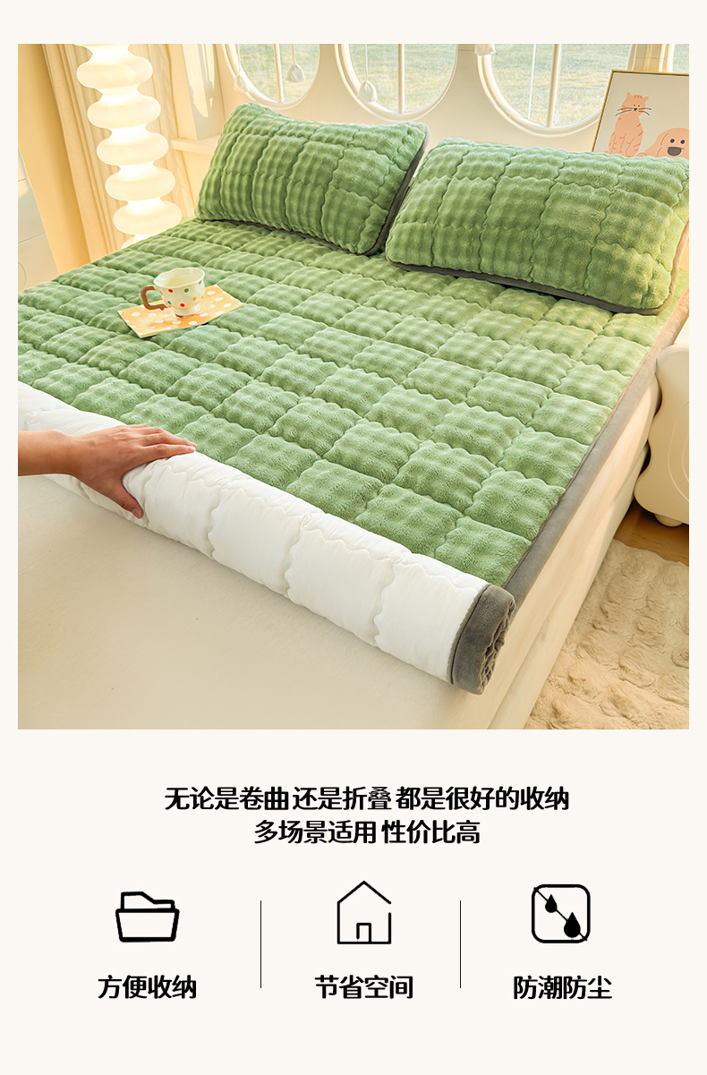 当前位置: 91家纺网 > 商品网购 > 床垫/床褥 > 普通床垫 > 奇丝雅 2025新款A类牛奶绒泡泡绒床褥床垫床盖兔毛绒家用学生宿舍上下铺寝室褥子软垫床护垫夹棉(大床)场景二 清新绿