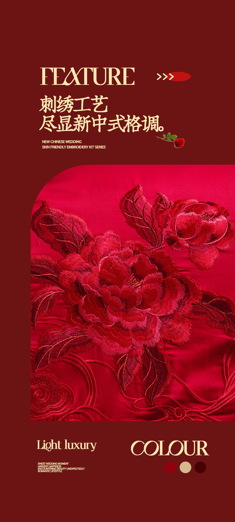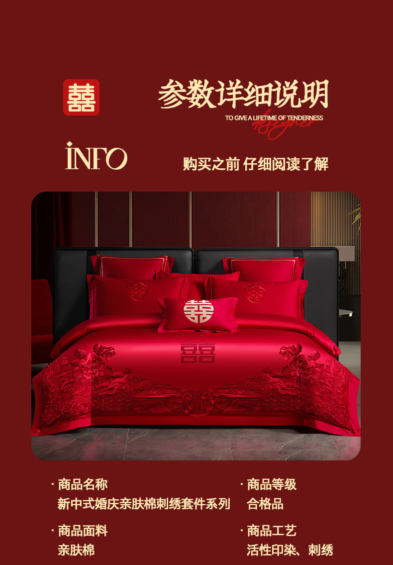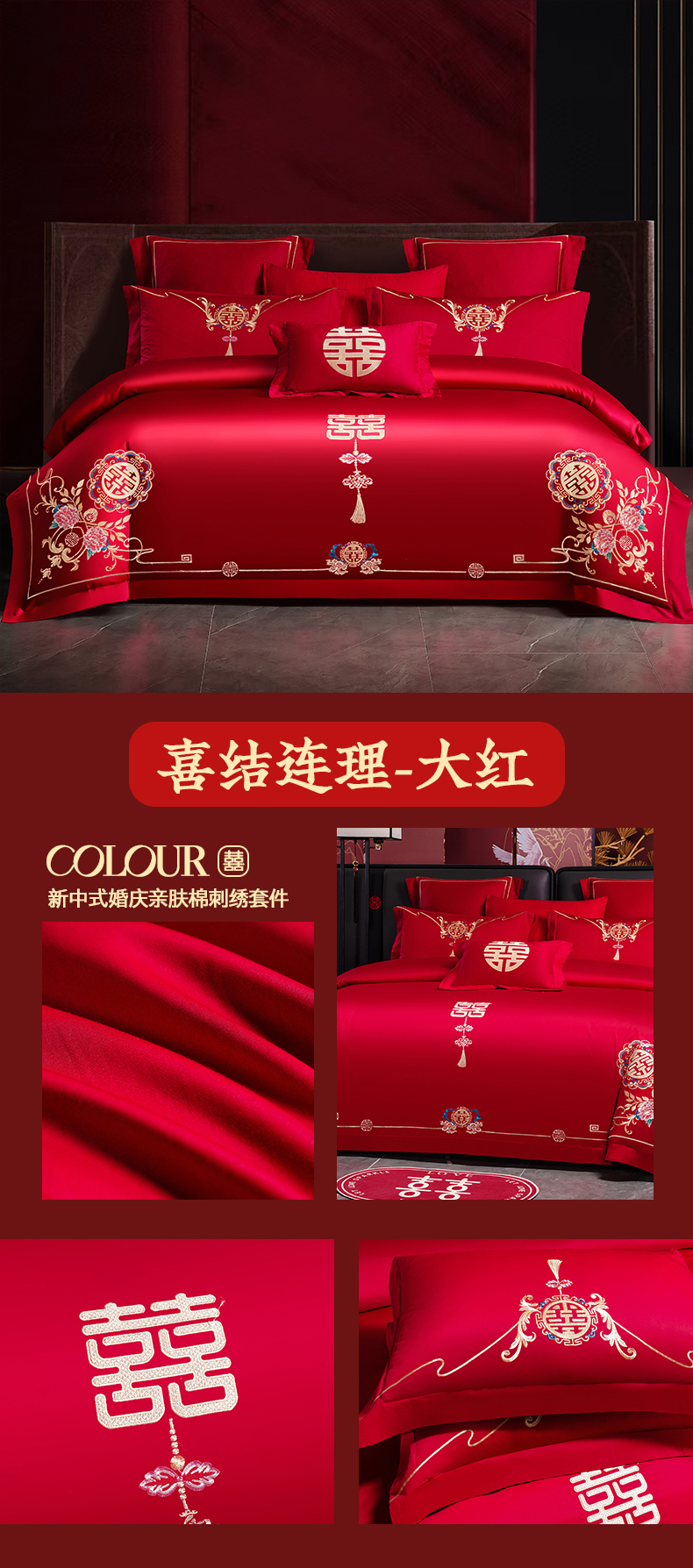 当前位置: 91家纺网 > 商品网购 > 床品套件 > 四件套 > 婚庆四件套 > 置顶家纺 2025新款新中式棚拍亲肤棉婚庆大红刺绣系列四件套 花开富贵-大红