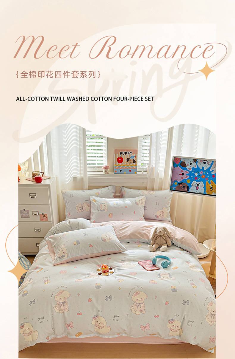当前位置: 91家纺网 > 商品网购 > 床品套件 > 四件套 > 全棉普通四件套 > 曼之夏 2025新款全棉纯棉印花四件套 心动狗狗