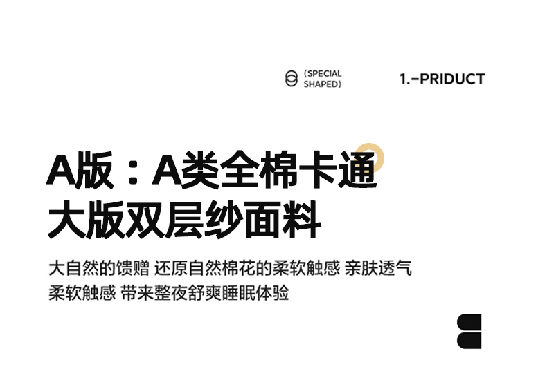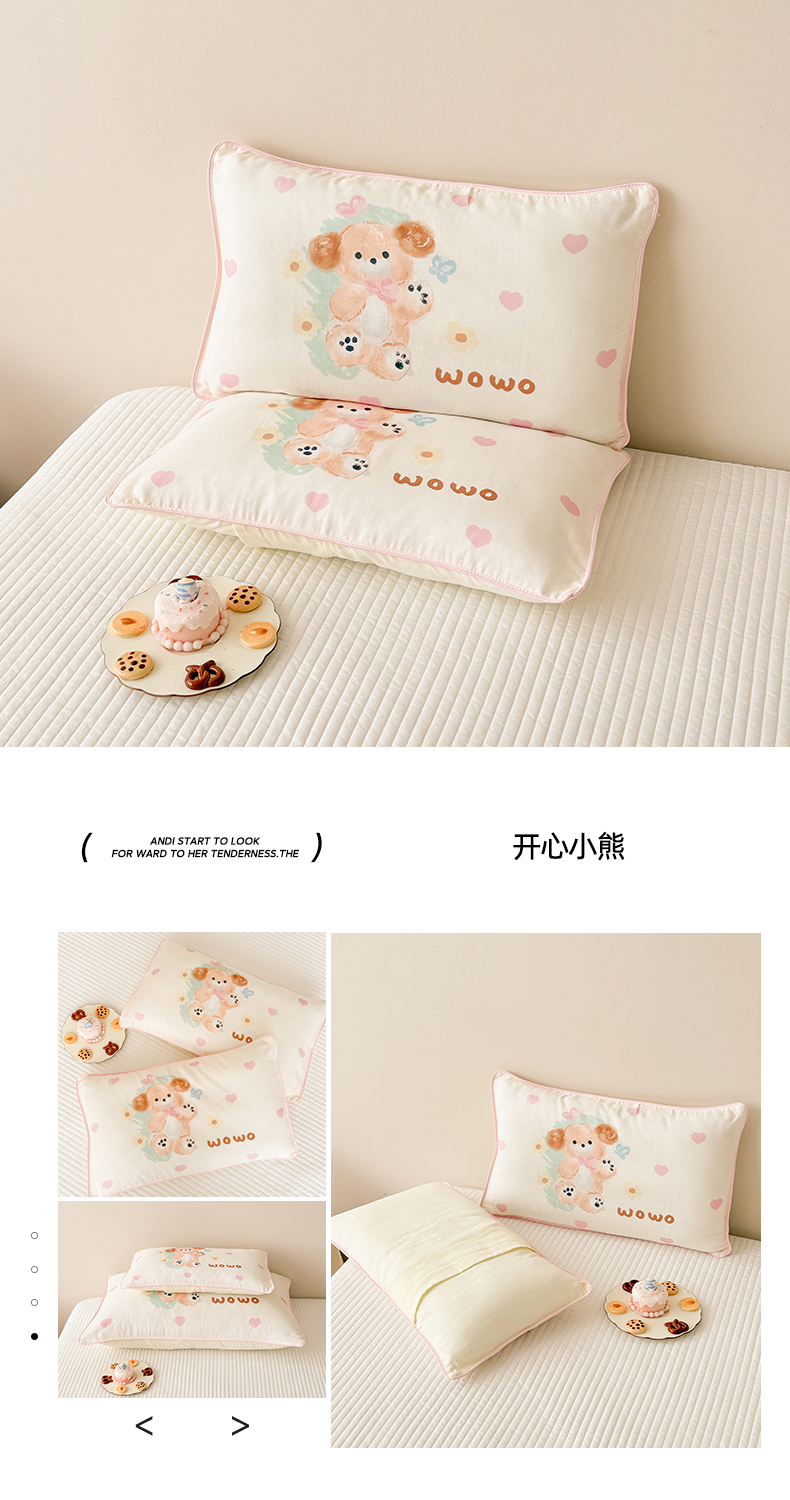 商品名称:呗旺鹿 2025新款A类全棉双层纱单枕套儿童枕头套 开心小熊