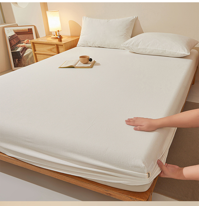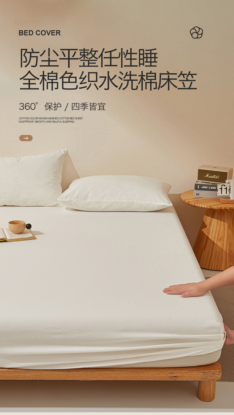 • 91家纺网 家纺一手货源 找家纺 优眠坊 2026新款全棉色织水洗纯色条格纯棉单层床笠床垫保护套 拾忆-白色