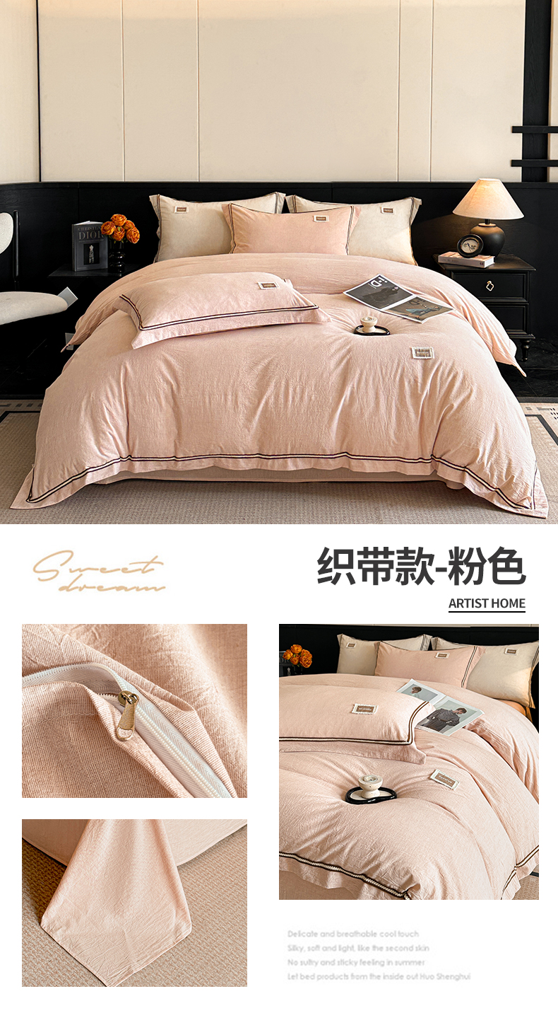 (总)笙意家纺 2025新款A类全棉棉麻织带款四件套