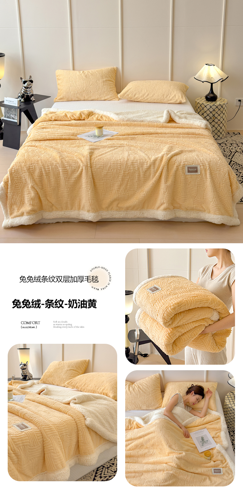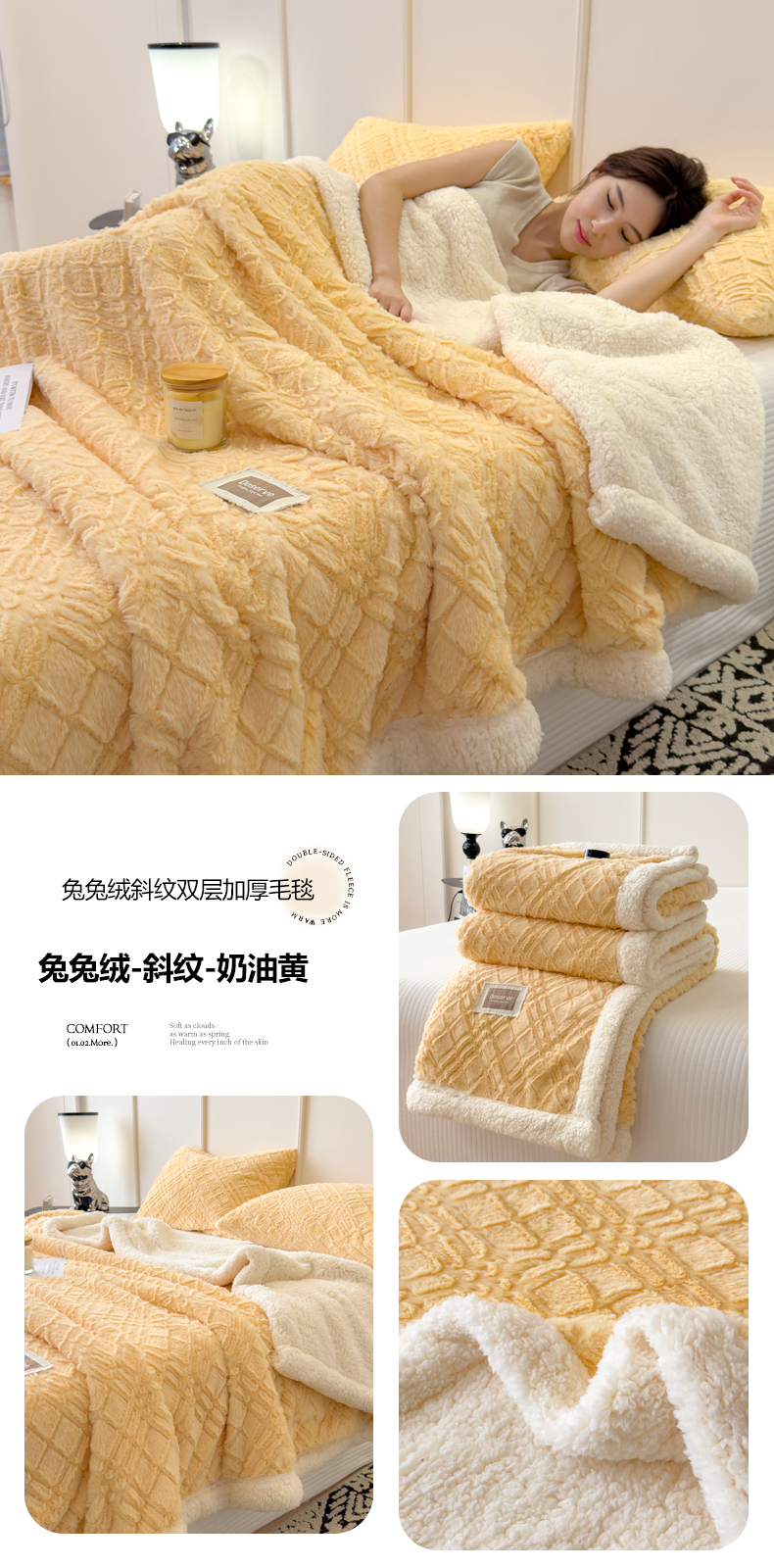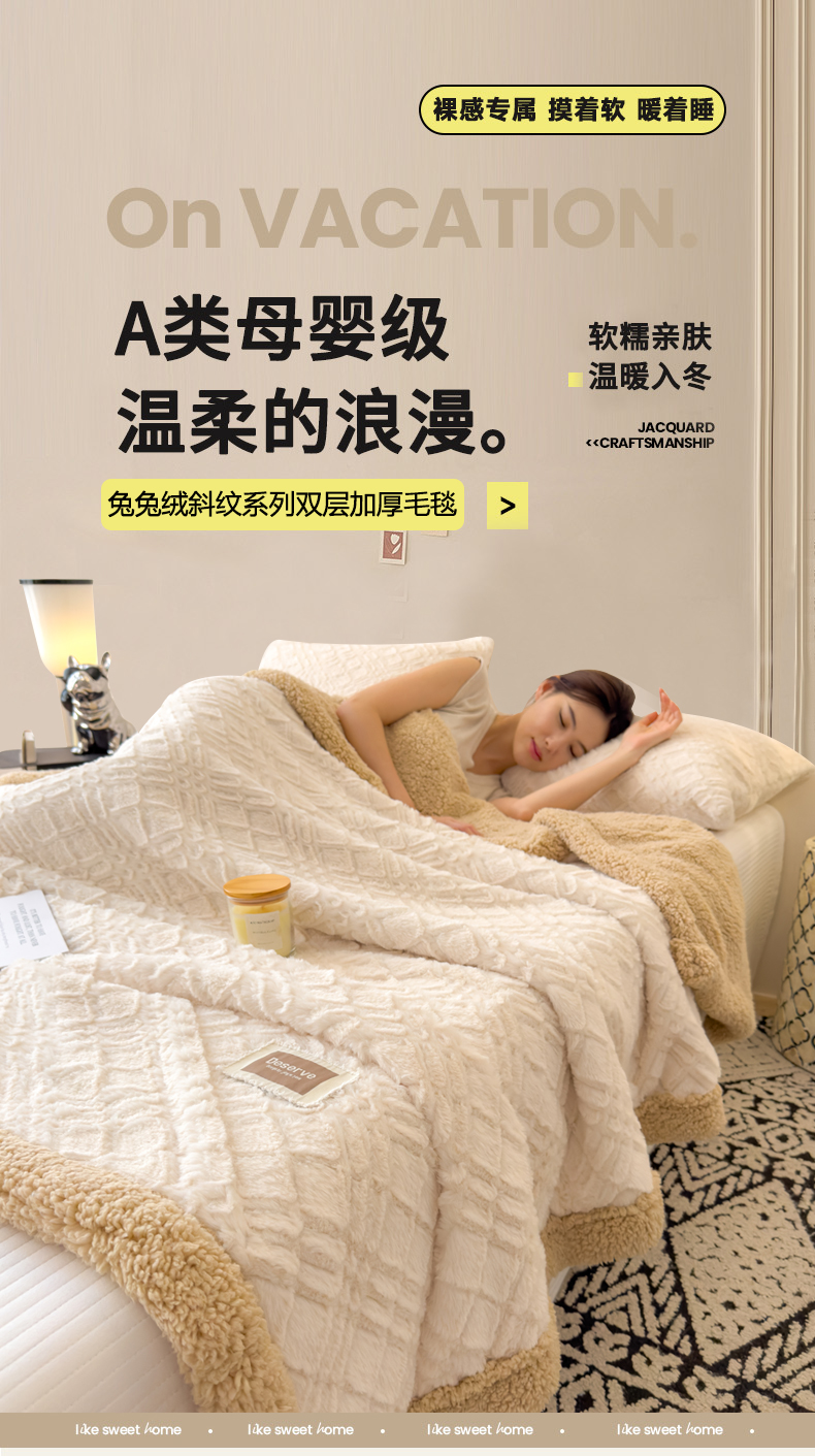 当前位置: 91家纺网 > 商品网购 > 毛毯休闲毯绒毯 > 毛毯 > 慕木家纺 2025新款A类高克重加厚兔毛绒双层毛毯斜纹条纹系列(跨境首选提供买家秀) 兔兔绒-斜纹-奶杏咖
