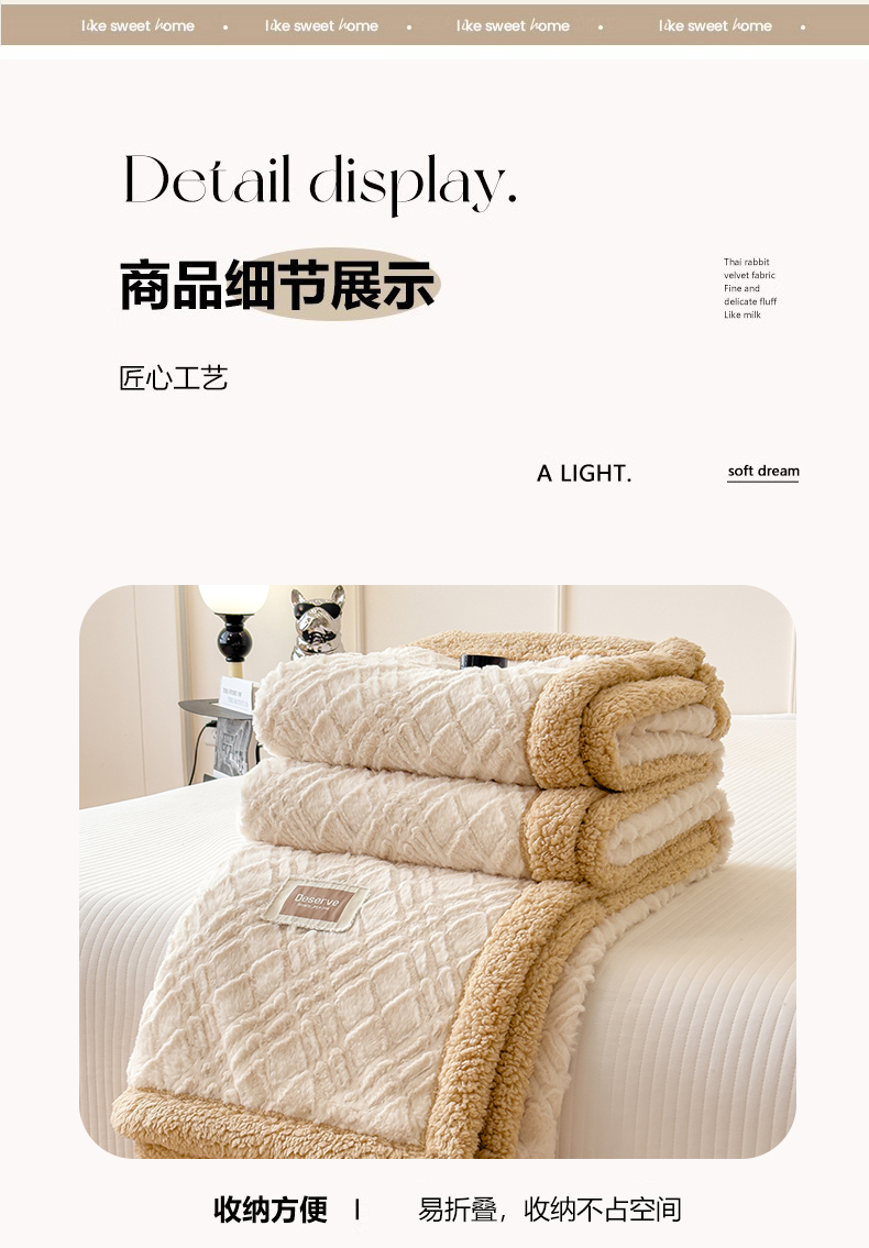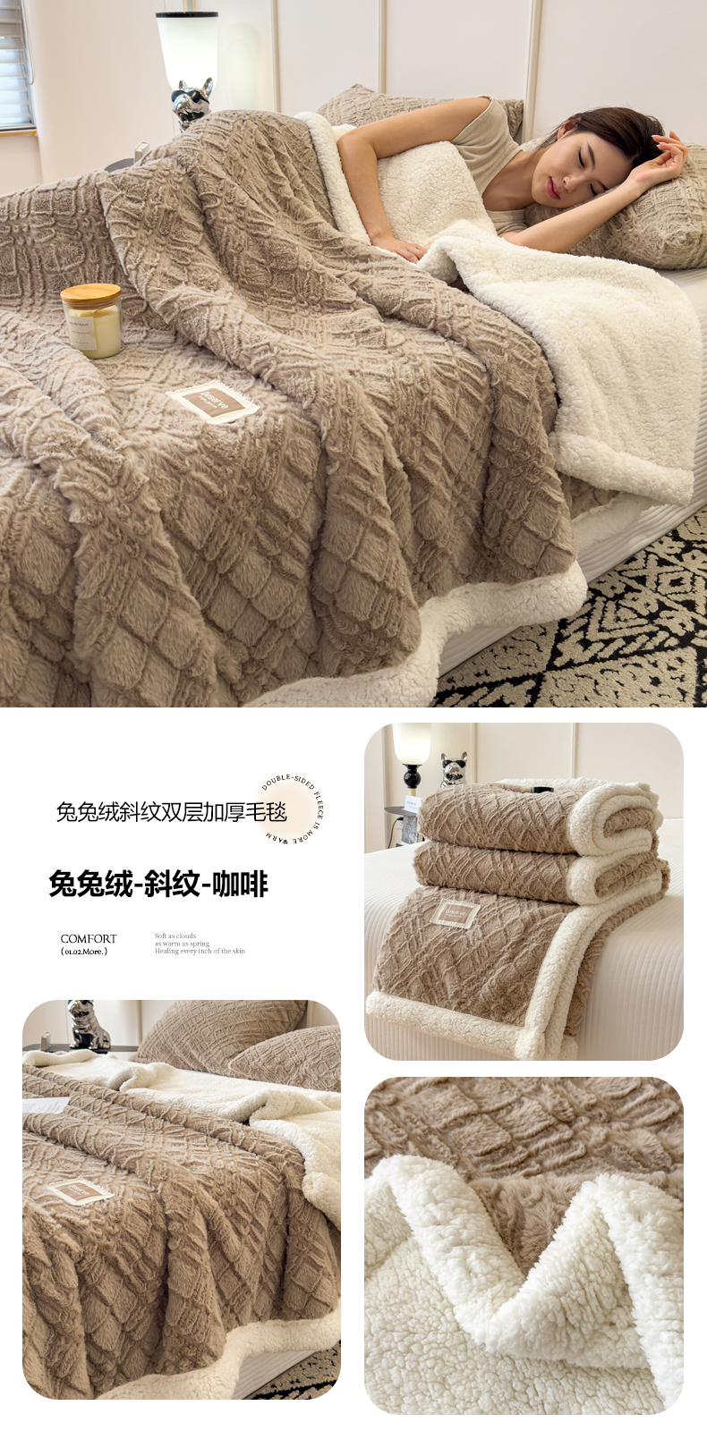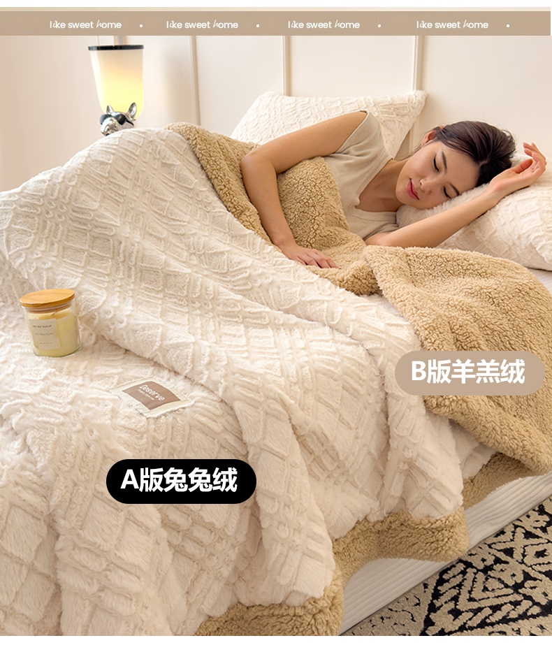 当前位置: 91家纺网 > 商品网购 > 毛毯休闲毯绒毯 > 毛毯 > 慕木家纺 2025新款A类高克重加厚兔毛绒双层毛毯斜纹条纹系列(跨境首选提供买家秀) 兔兔绒-斜纹-奶杏咖