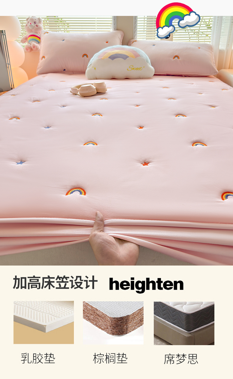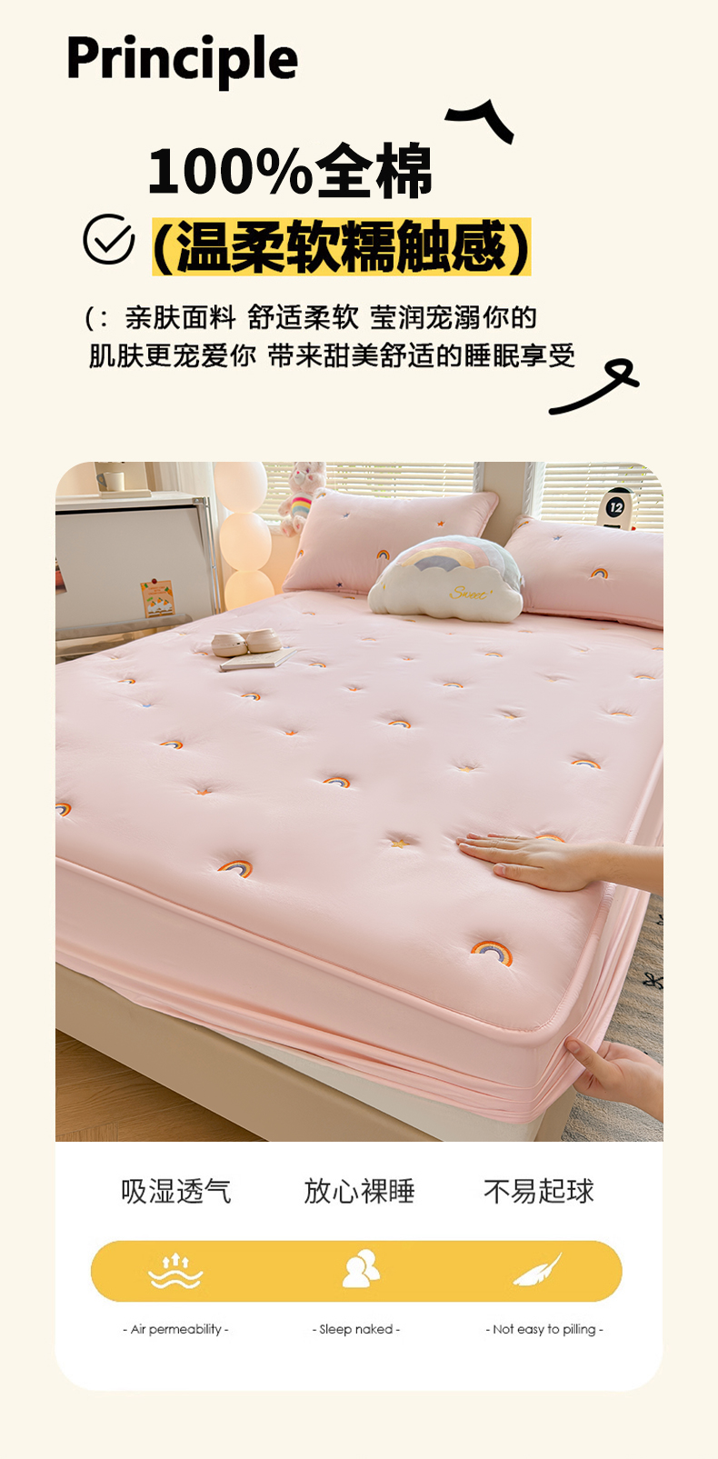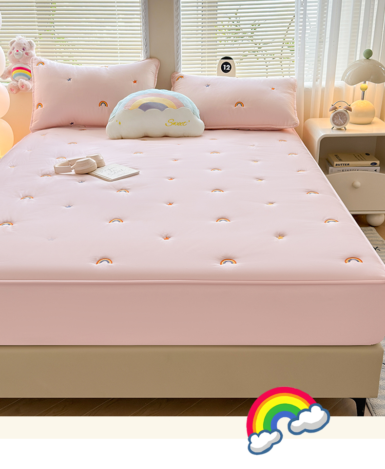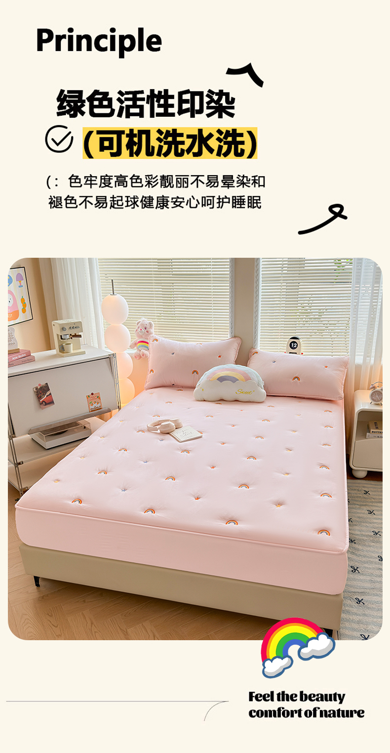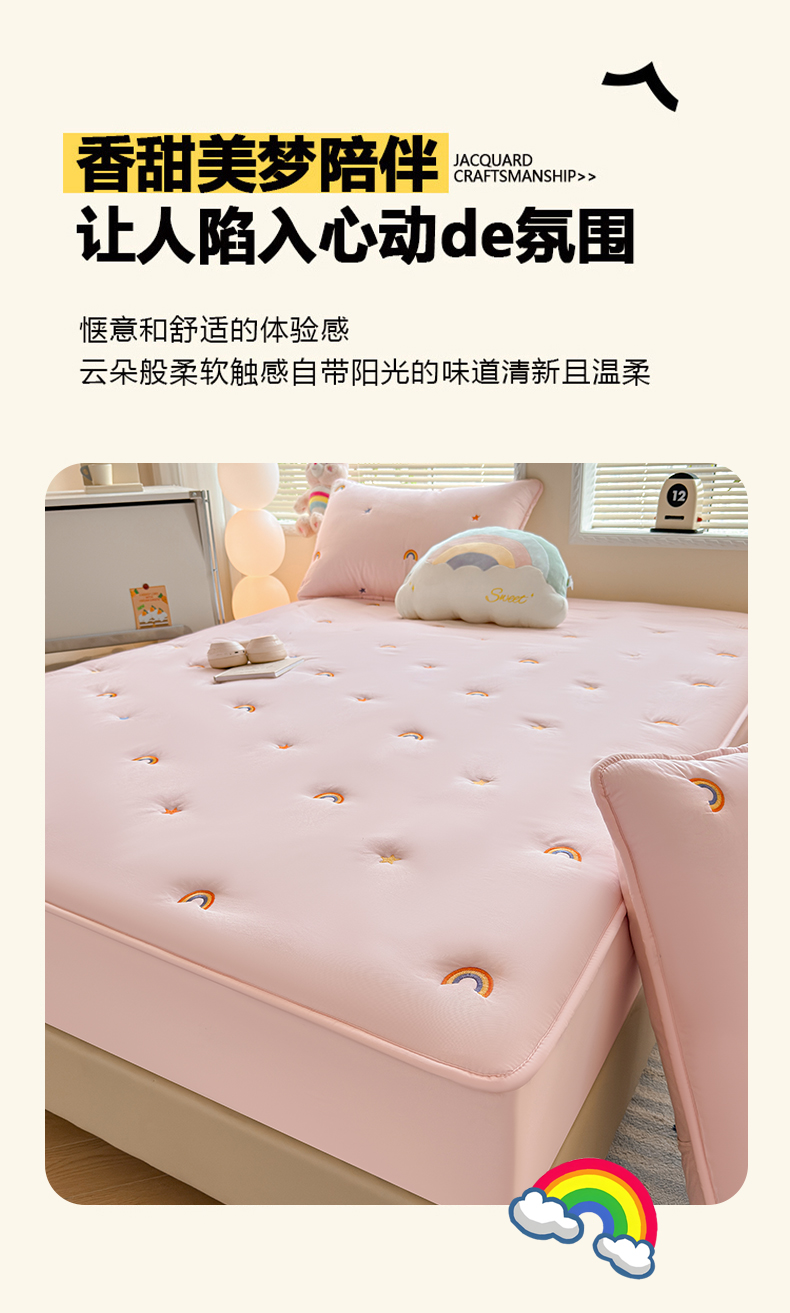 糯米猪家纺 2025新款A类卡皮巴拉全棉夹棉床笠 彩虹-粉