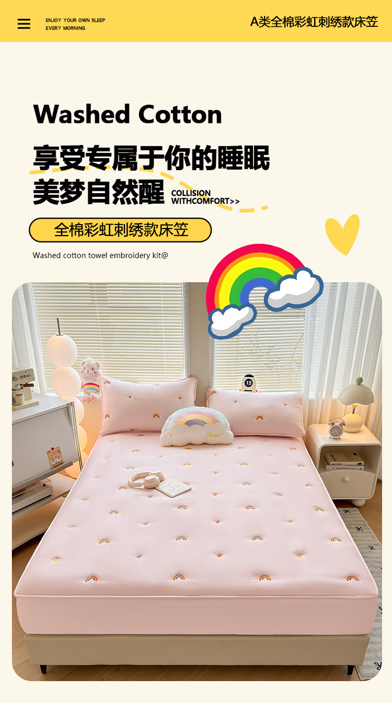 (总)糯米猪家纺 2025新款全棉纯棉彩虹刺绣款床笠单品床笠床笠单件,组合图仅做展示不可下单,彩虹-米,彩虹-灰,彩虹-蓝,彩虹-紫,彩虹-鹅黄,彩虹-粉