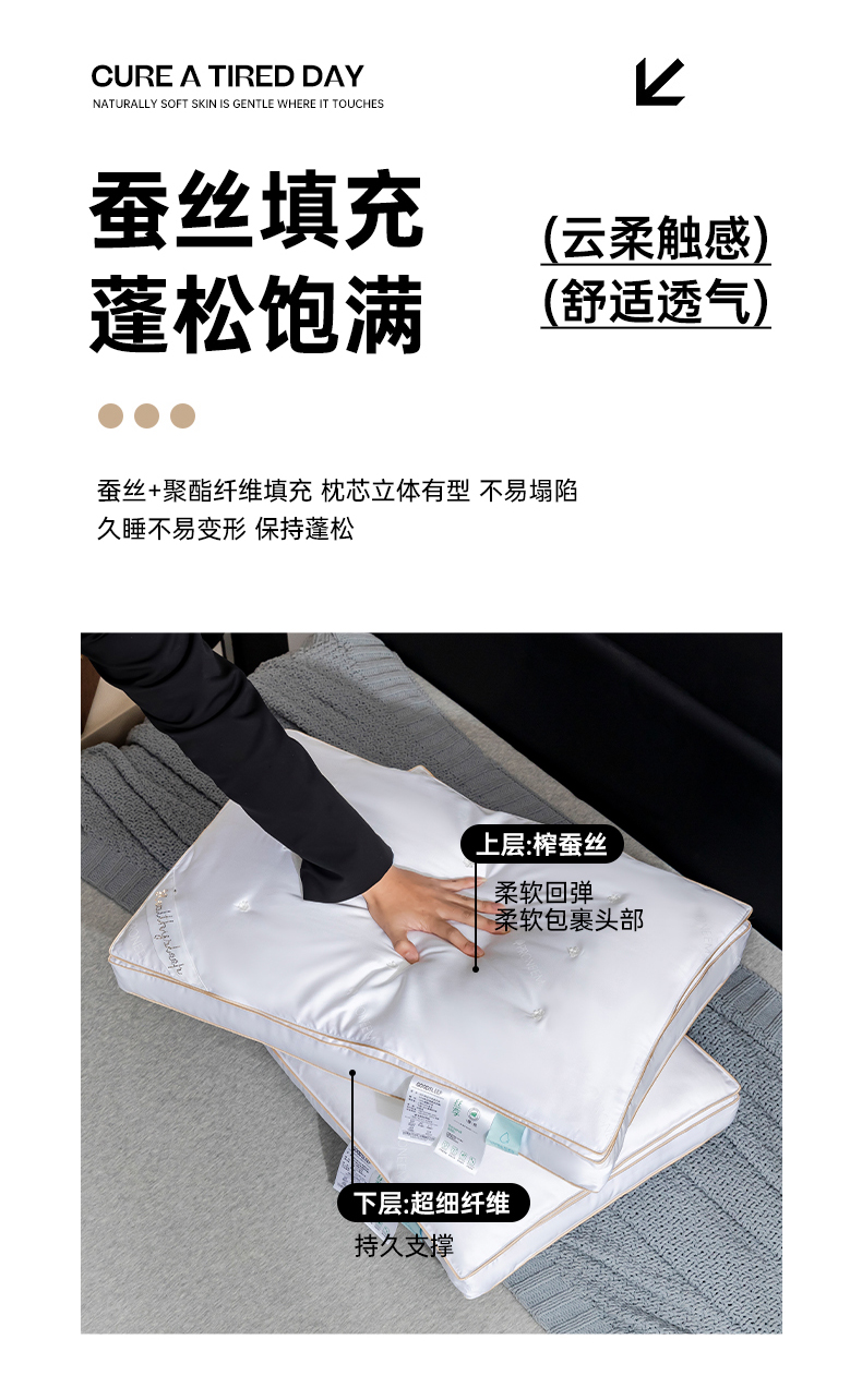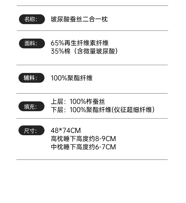 商品名称:(总)星芯合家纺 2025新款玻尿酸蚕丝二合一枕枕头枕芯