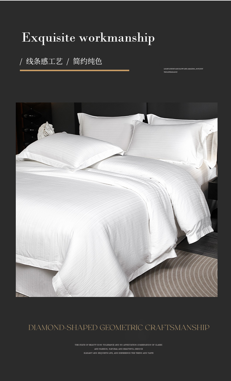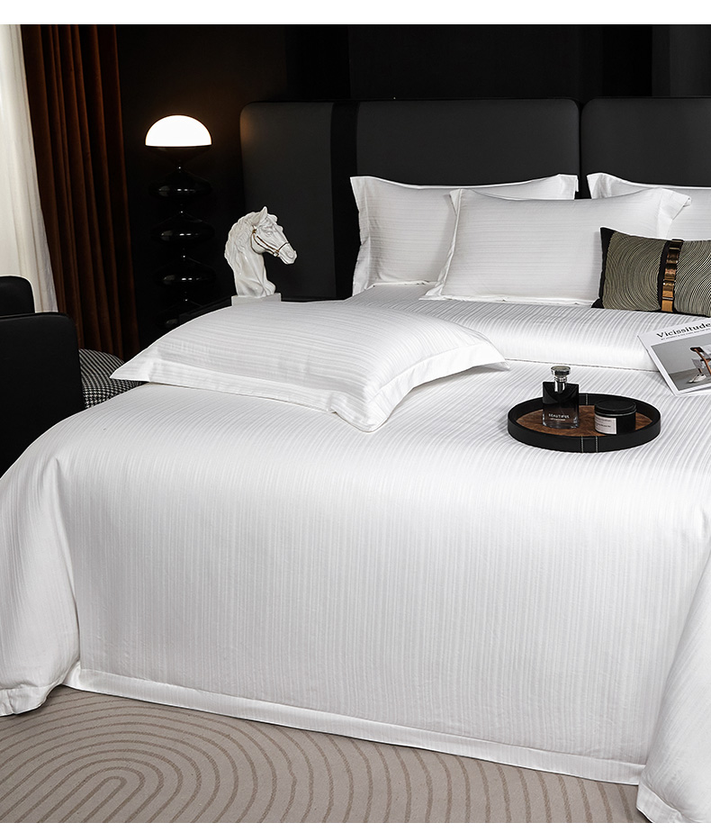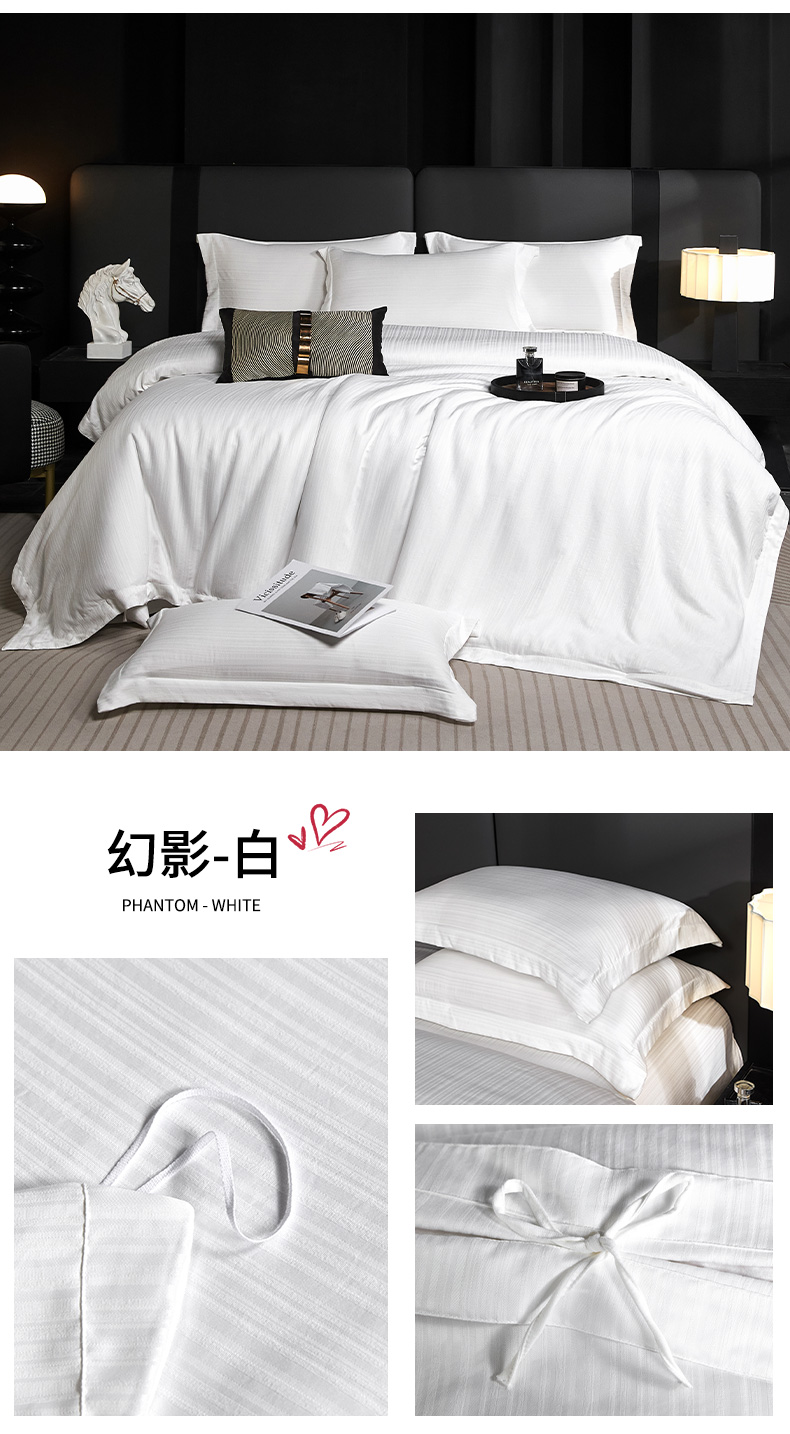 当前位置: 91家纺网 > 商品网购 > 床品套件 > 四件套 > 其它四件套 > 乐卧家居 2026新款轻奢高级酒店宾馆高档线条感提花纹样系带款四件套-幻影 幻影-白