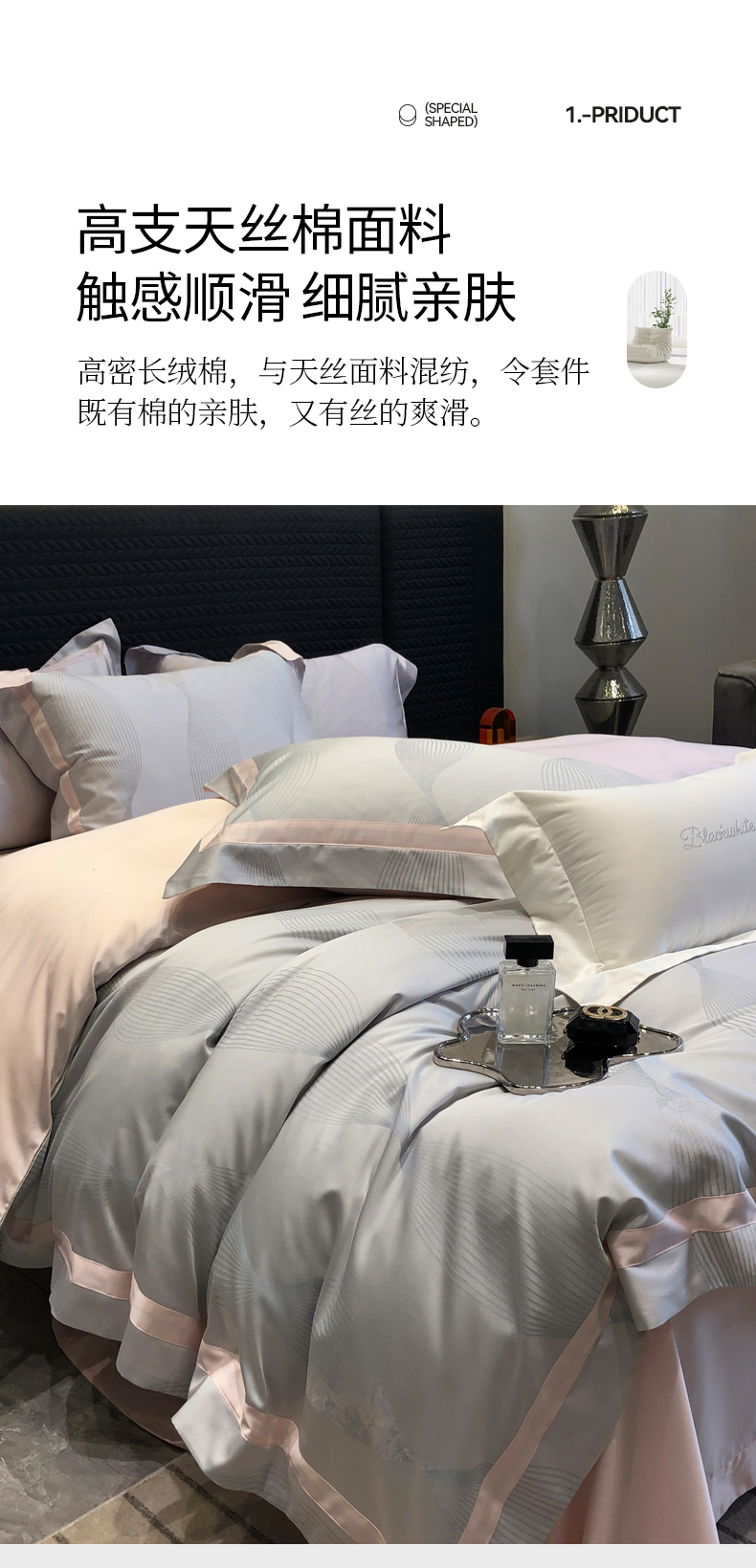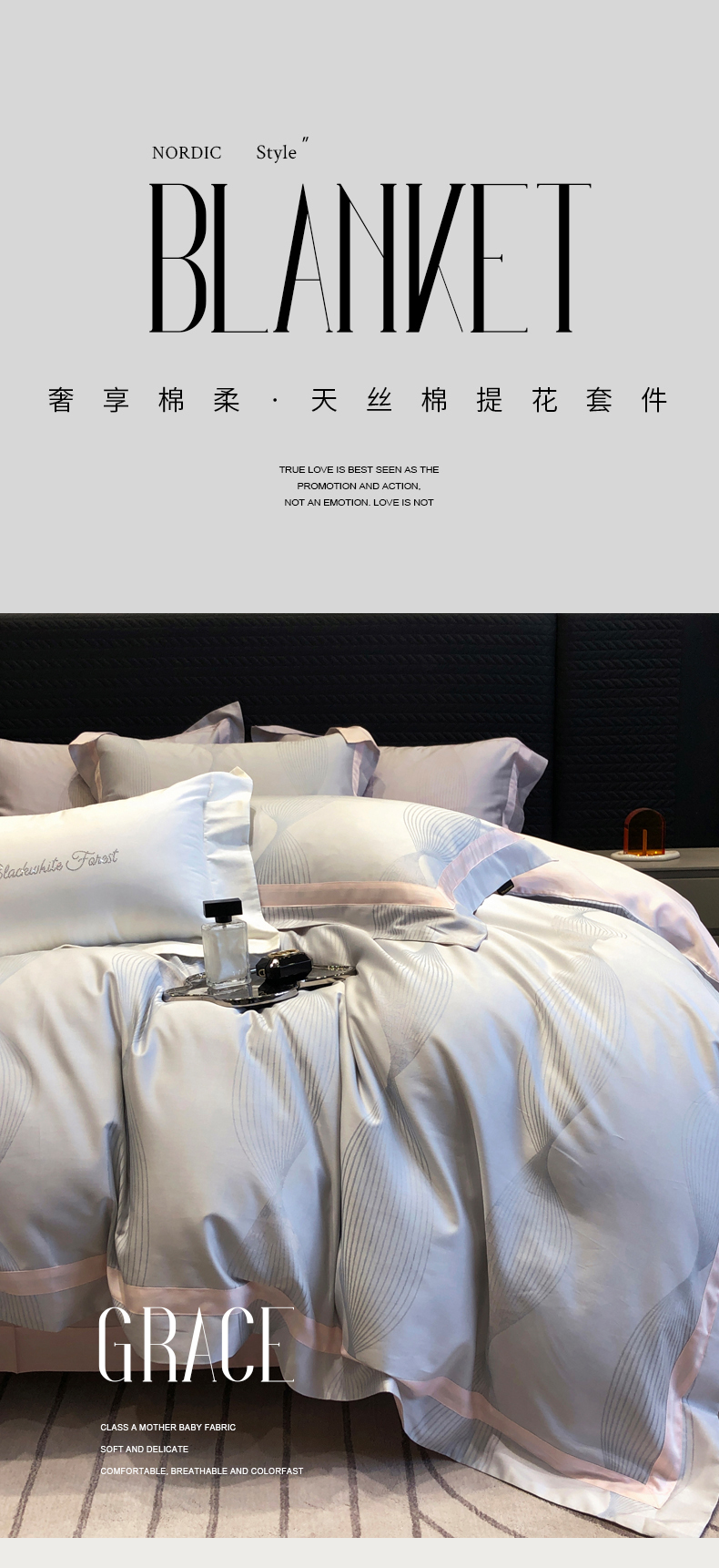 (总)黑白森林2024款 80X80S高支天丝棉四件套镂空蕾丝花边天丝全棉,尚美-晨夕粉,尚美-古象白,尚美-青砂绿,尚美-银雪灰
