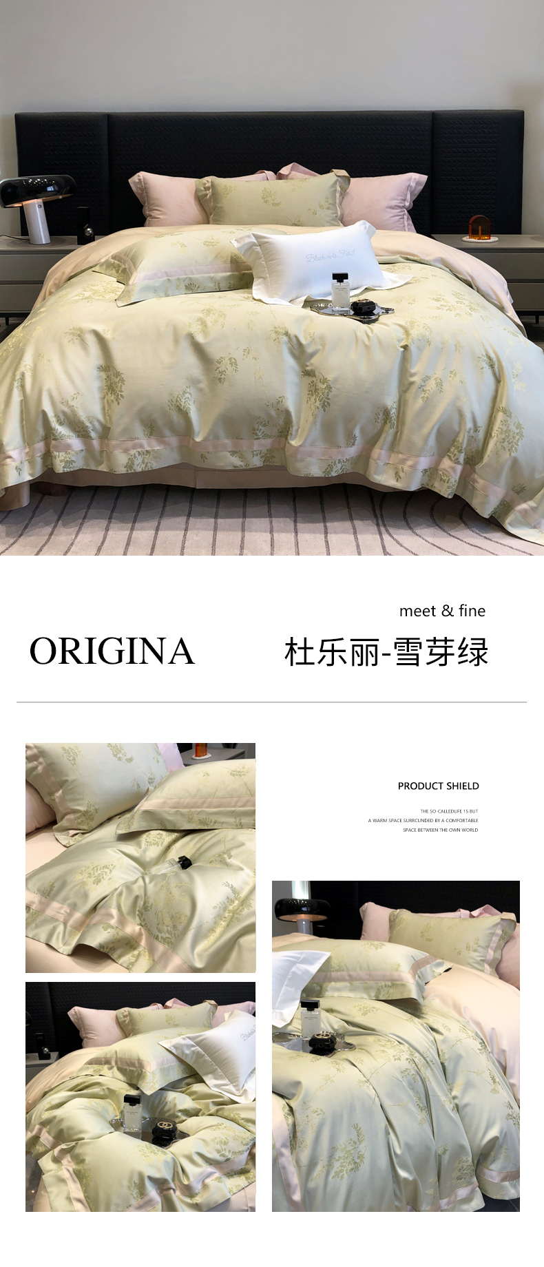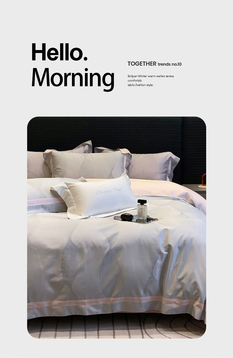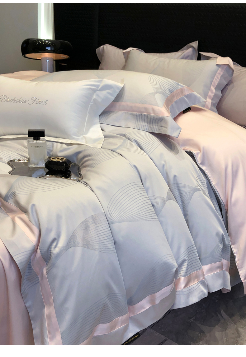 黑白森林2024款 100S支天丝棉提花四件套天丝全棉,芙拉维-裸灰,芙拉维-秋绿,圣露安-雾粉,圣露安-香槟,西西里-奶白,西西里-柔粉