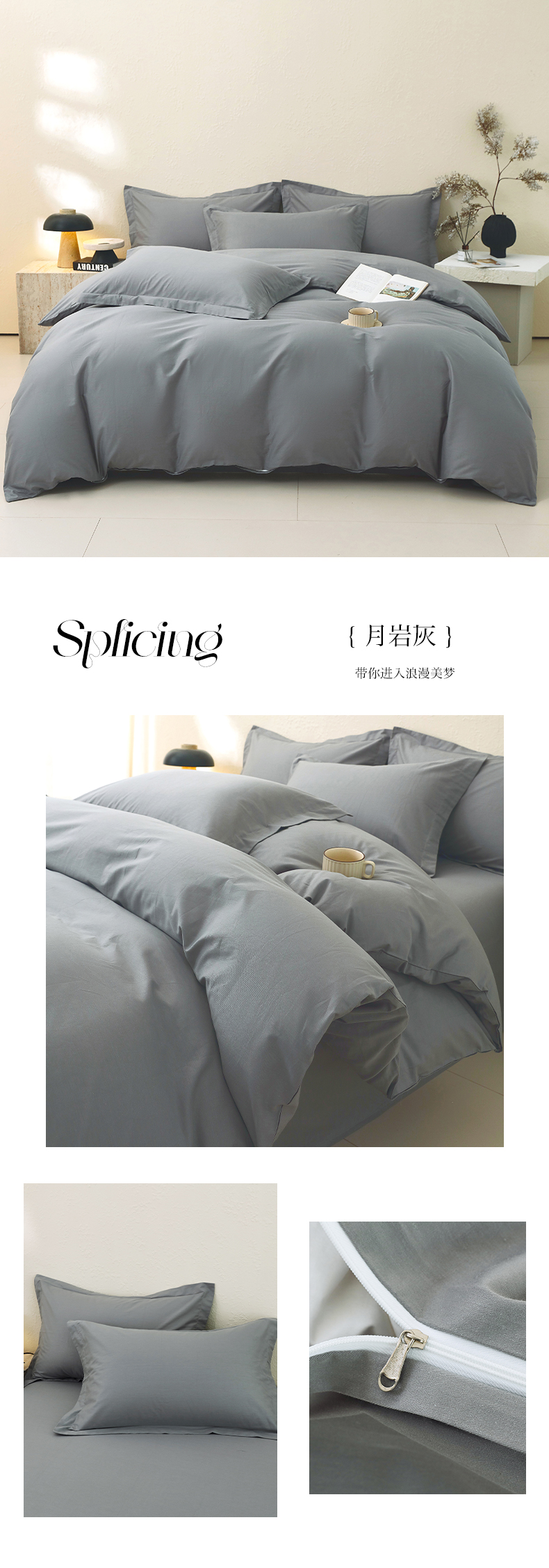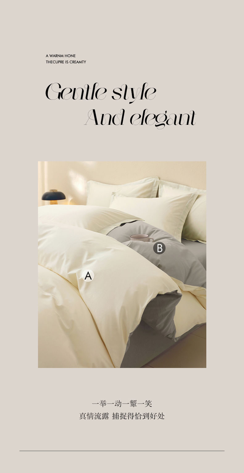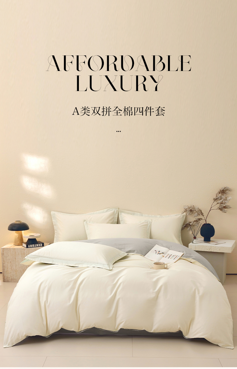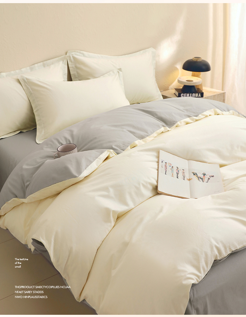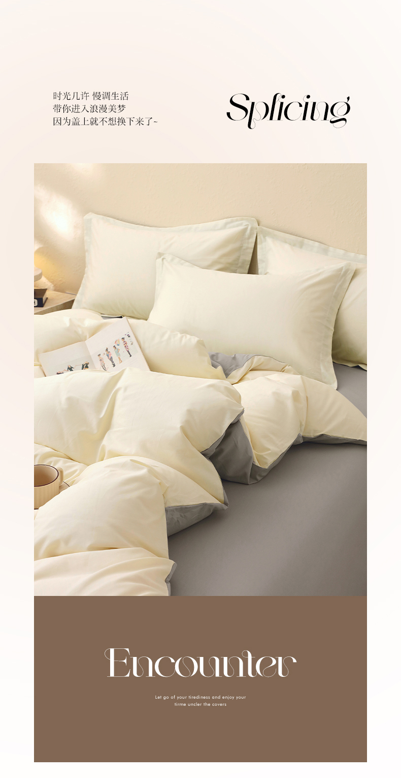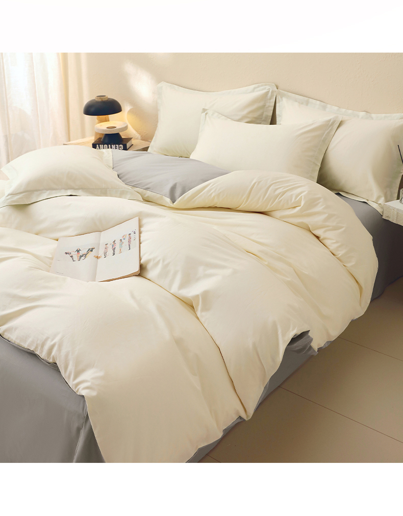 当前位置: 91家纺网 > 商品网购 > 床品套件 > 四件套 > 全棉普通四件套 > 小懒猪 2026新款13372A类双拼纯色全棉纯棉四件套 奶昔白-椰子灰