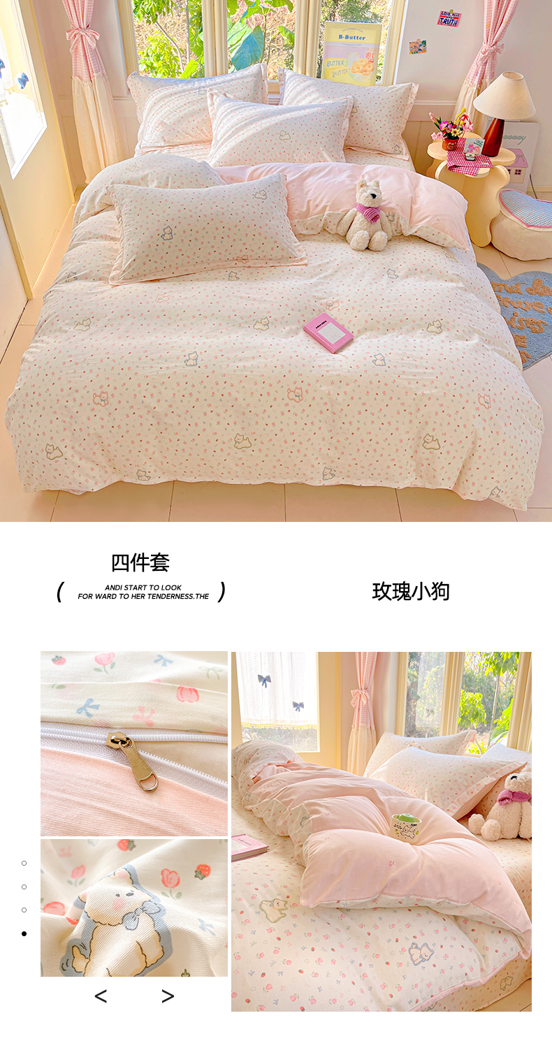 当前位置: 91家纺网 > 商品网购 > 床品套件 > 四件套 > 全棉普通四件套 > 莱通家纺 2026春夏新款全棉12868印花四件套单品系列-四件套 汪星卧室