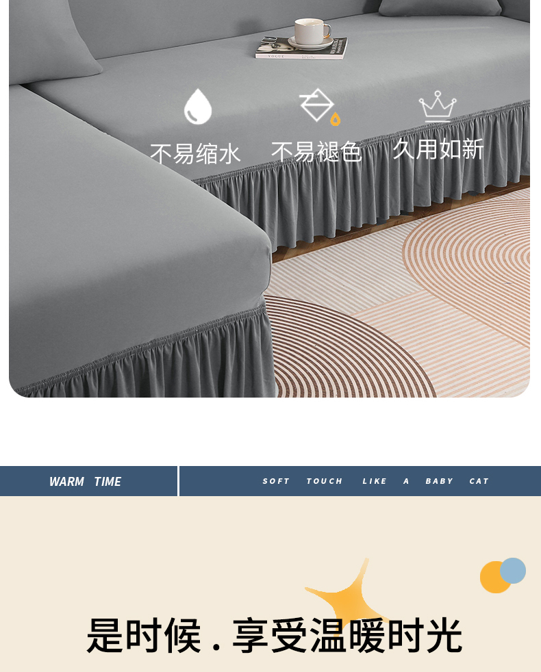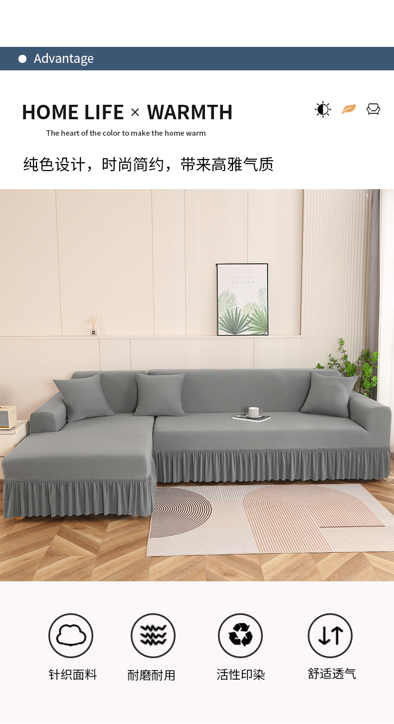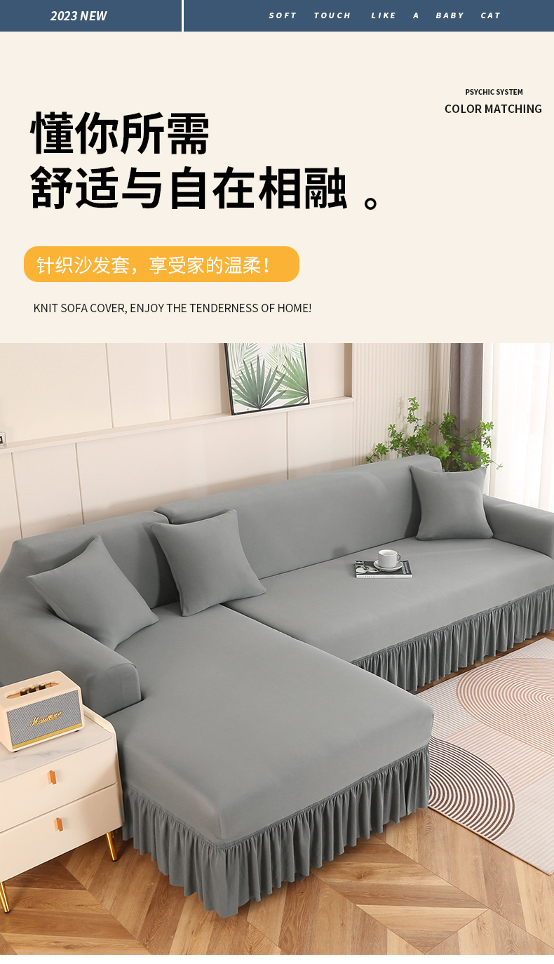 (总)兴俪韵家纺 2023新款三人位纯色简约针织沙发套-针织