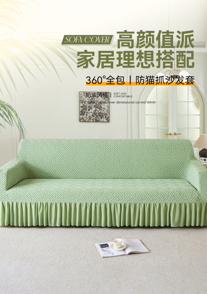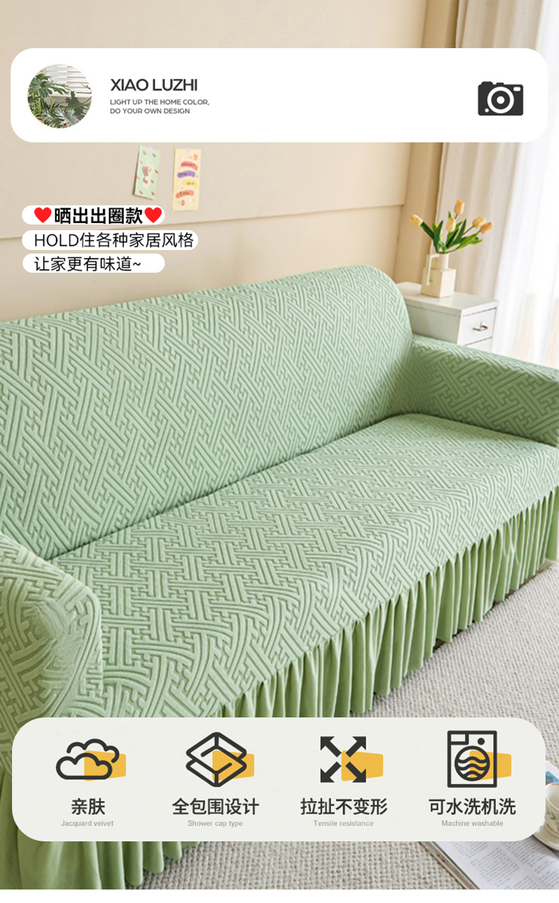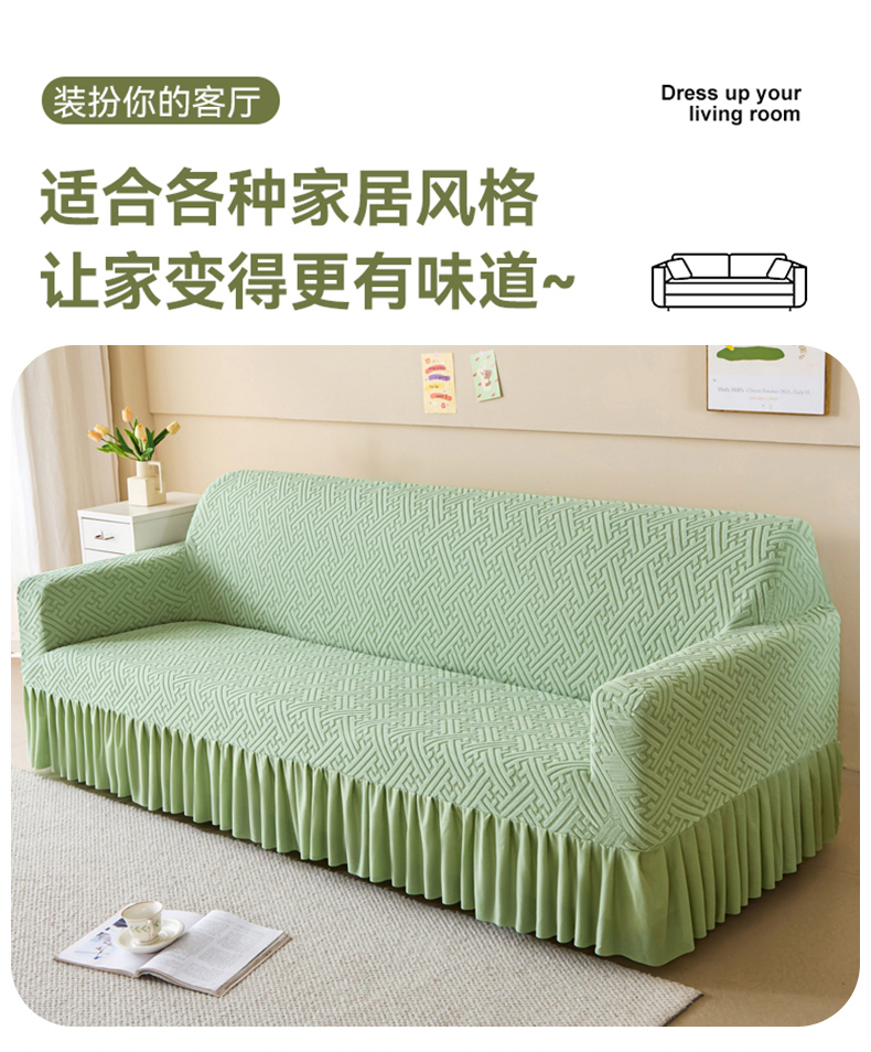 商品名称:(总)兴俪韵家纺 2025新款裙边款非字格双扶手沙发套