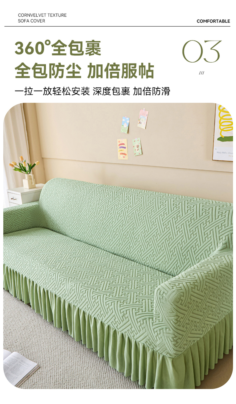 (总)兴俪韵家纺 2025新款裙边款非字格双扶手沙发套
