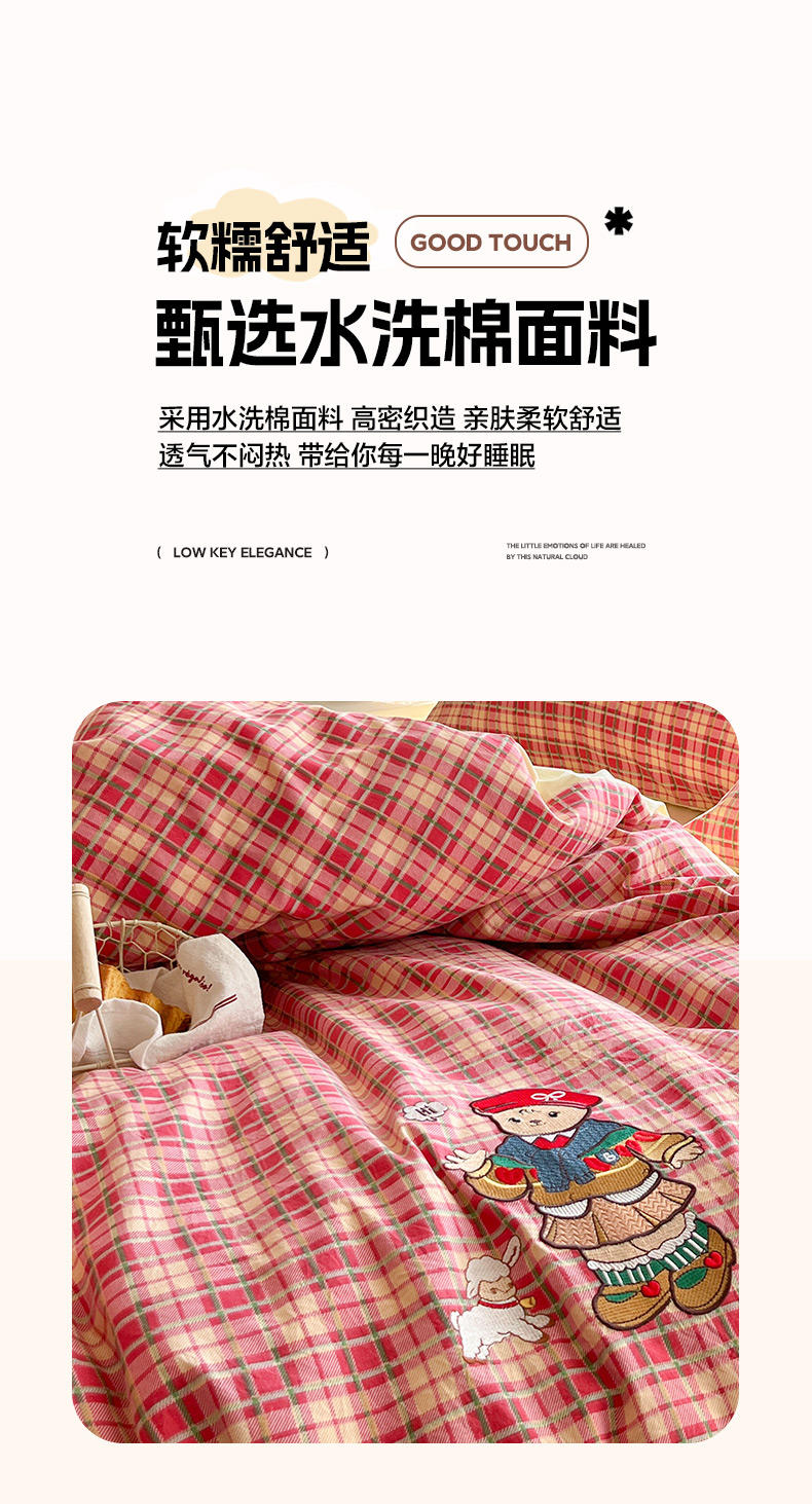 当前位置: 91家纺网 > 商品网购 > 床品套件 > 四件套 > 水洗棉四件套 > 优承佳生活馆 2026新款软糯云朵棉刺绣三件套四件套单被套小熊系列-系列二 红帽小熊