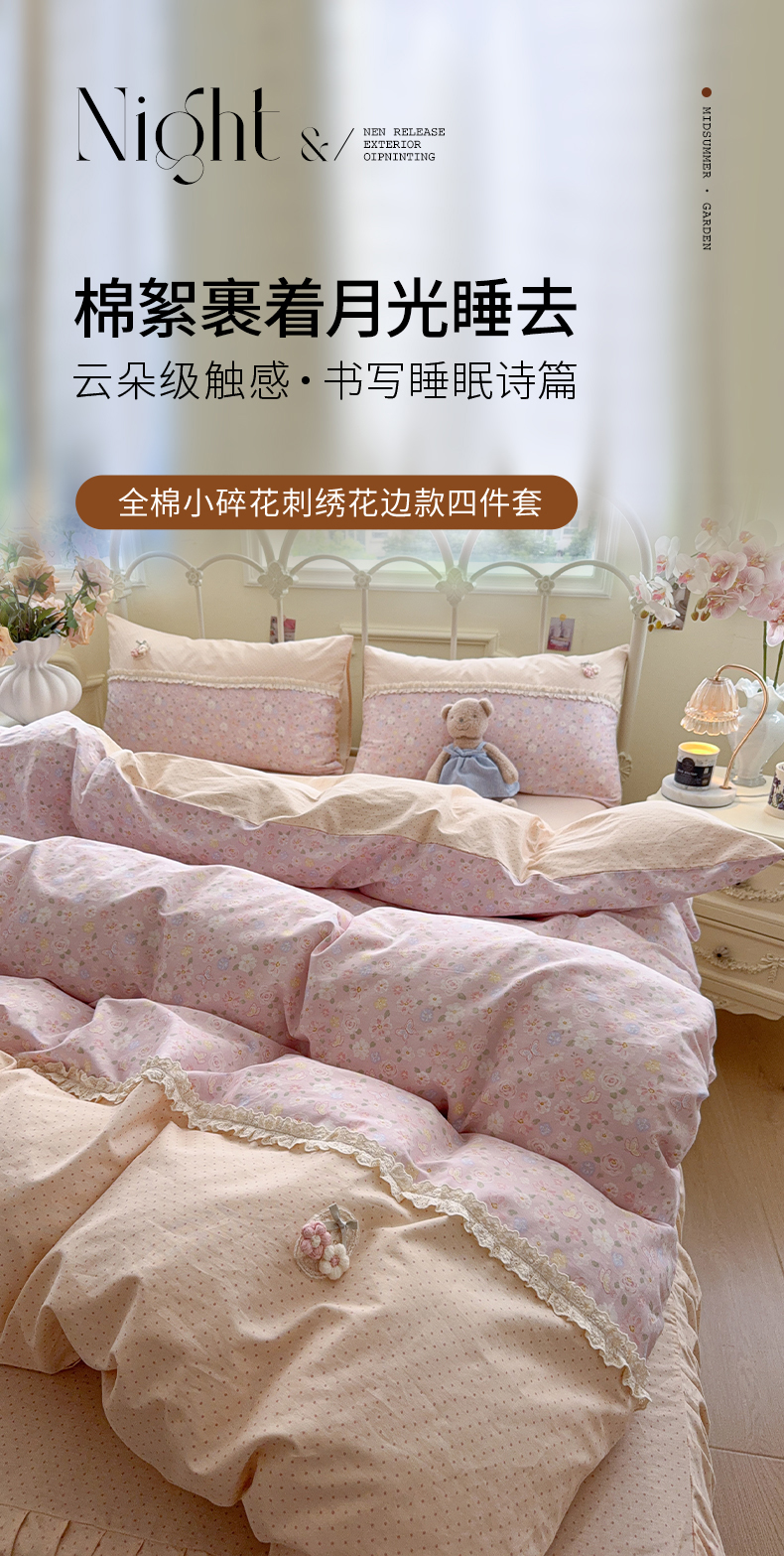 当前位置: 91家纺网 > 商品网购 > 床品套件 > 四件套 > 全棉普通四件套 > 安莱生活 2026年新品全棉纯棉小碎花刺绣花边款四件套-小碎花系列 凯特花园
