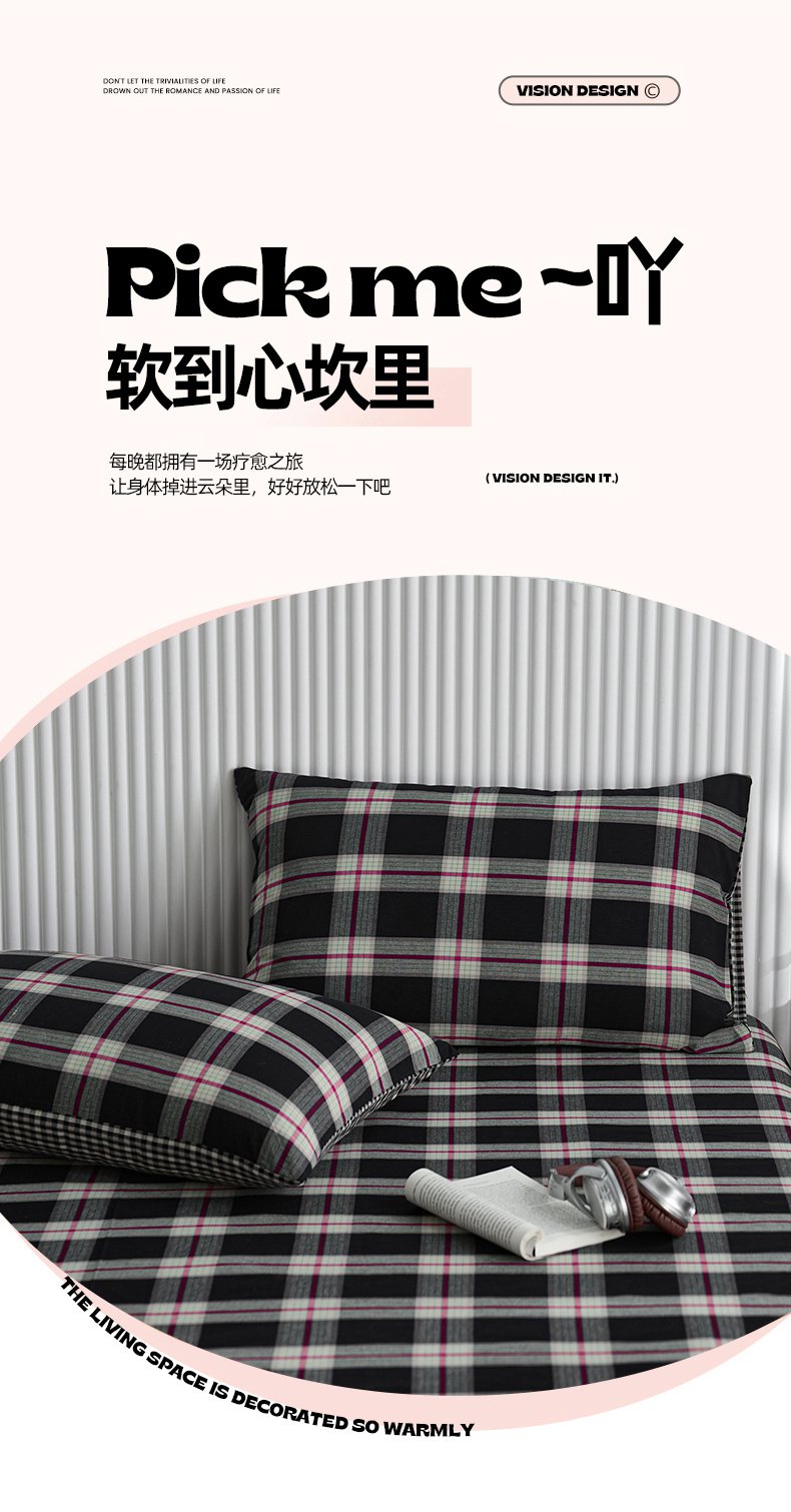 启程家纺 2026新款纯棉水洗棉复古大格系列多规格纯棉枕套 摩登大咖