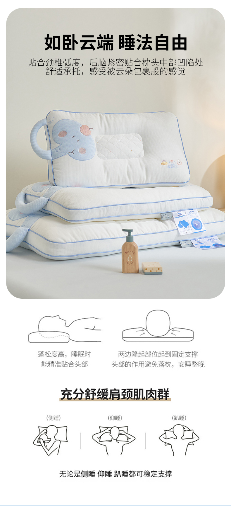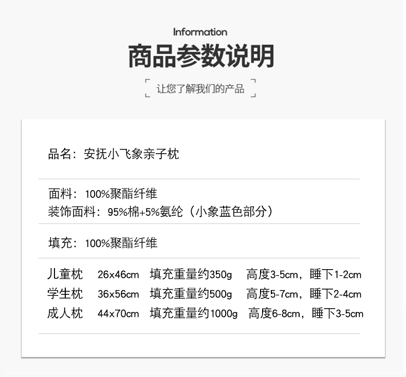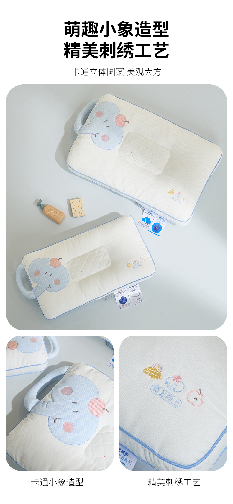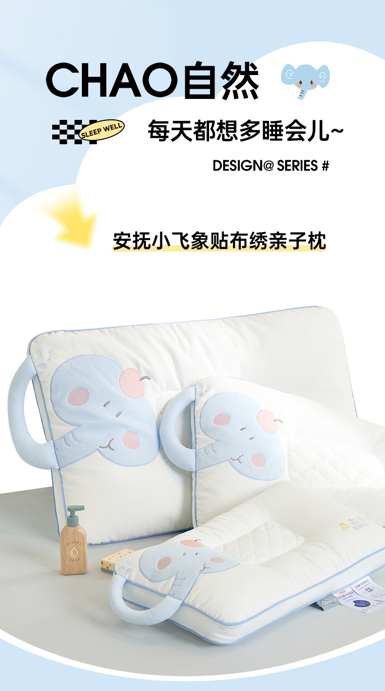 商品名称:(总)昕科 2026新款安抚小飞象亲子枕卡通大象儿童枕头学生小象动物枕芯贴布绣枕枕头枕芯