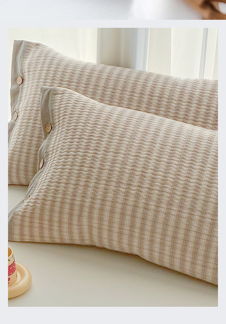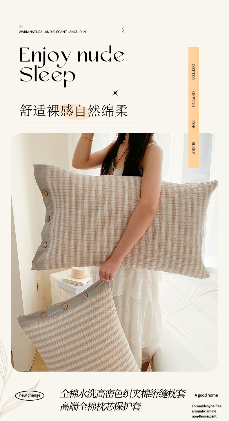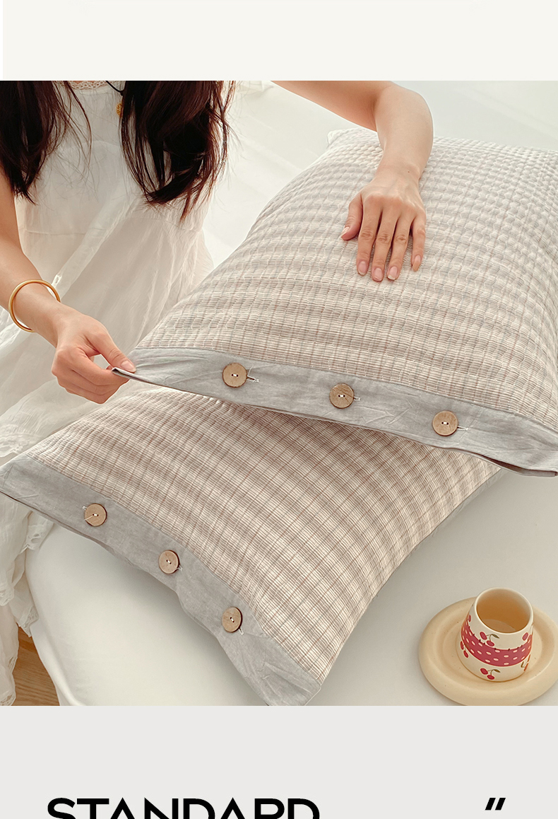 商品名称:美宜家 2026新款全棉水洗高密色织夹棉纺缝枕套高端全棉枕芯保护套 5.邂逅米灰