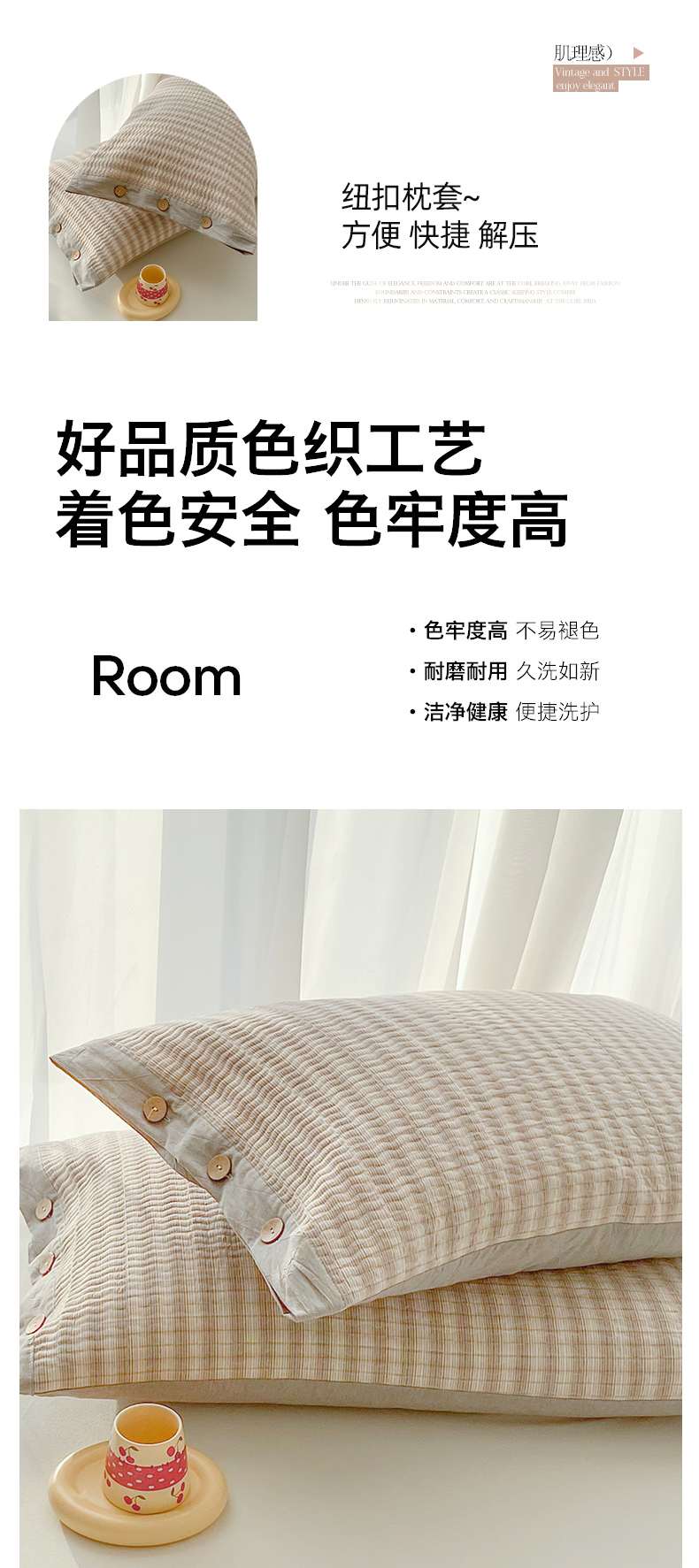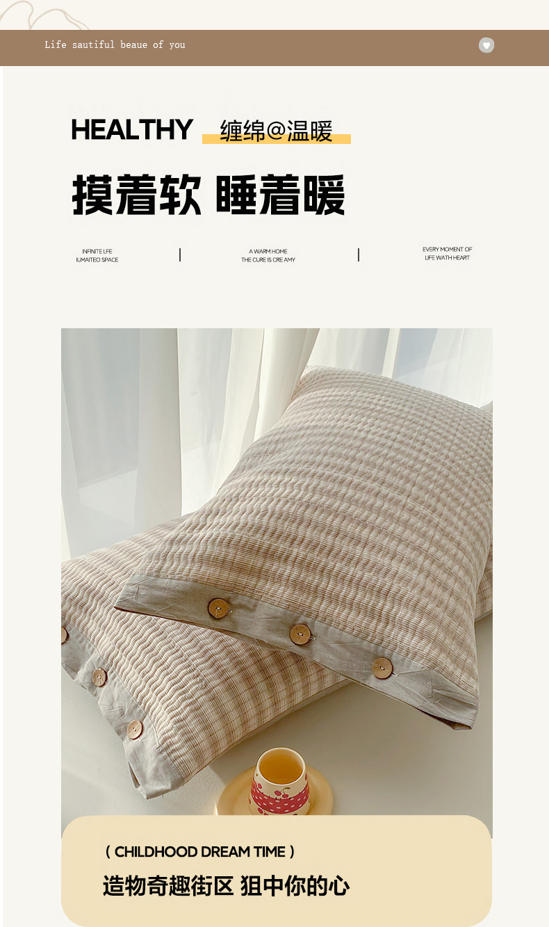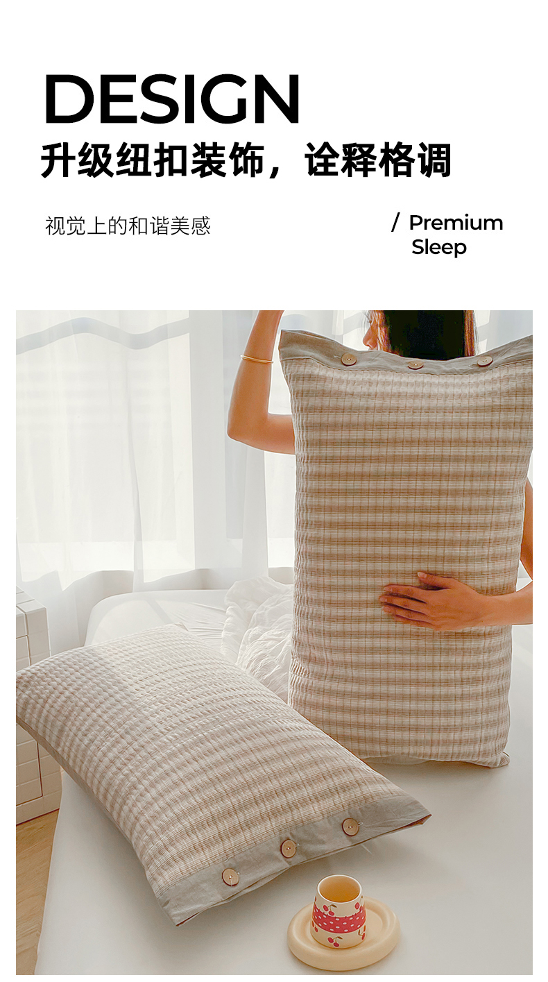 商品名称:美宜家 2026新款全棉水洗高密色织夹棉纺缝枕套高端全棉枕芯保护套 5.邂逅米灰