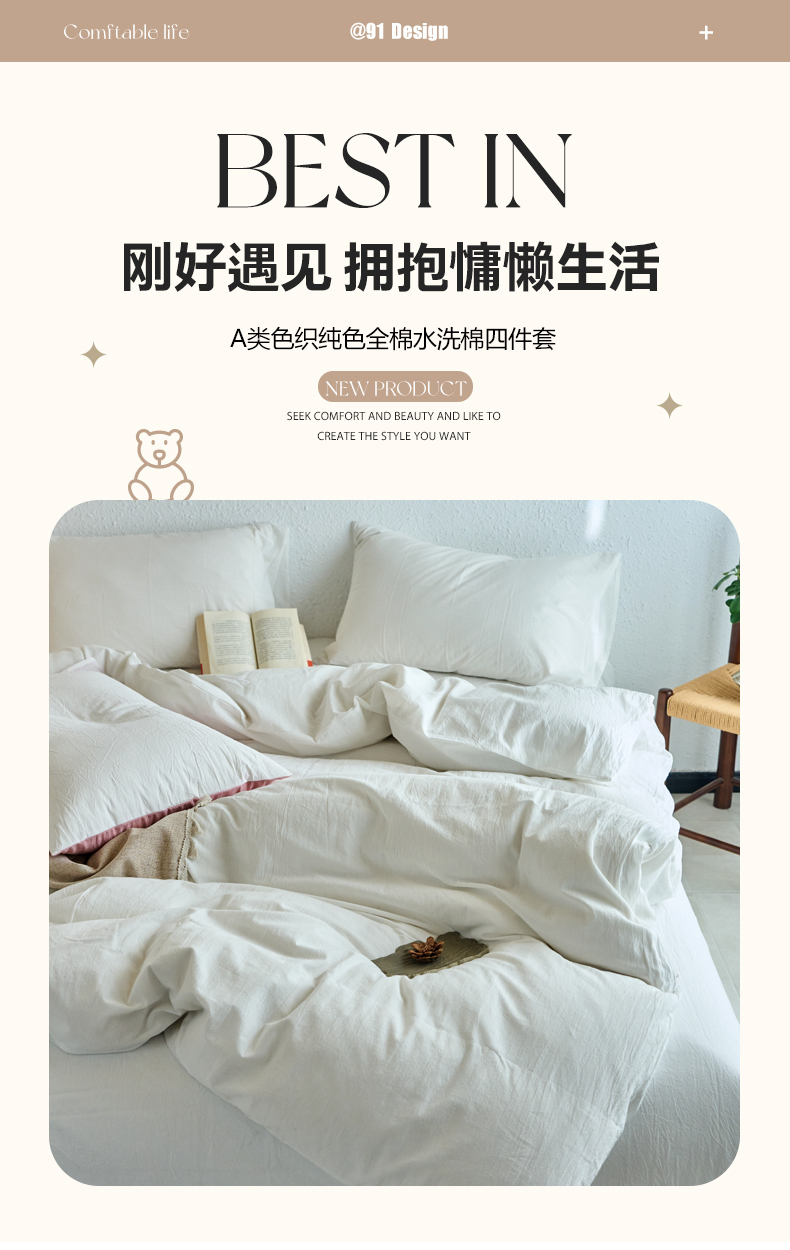 当前位置: 91家纺网 > 商品网购 > 床品套件 > 四件套 > 全棉普通四件套 > 兰紫橙家纺 2026新款A类色织纯色全棉水洗棉四件套 全棉水洗棉-奶白