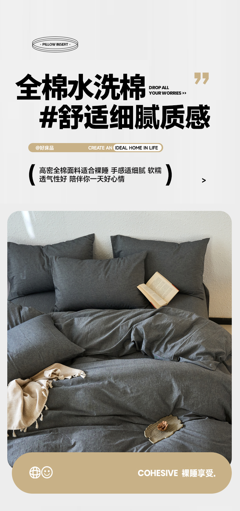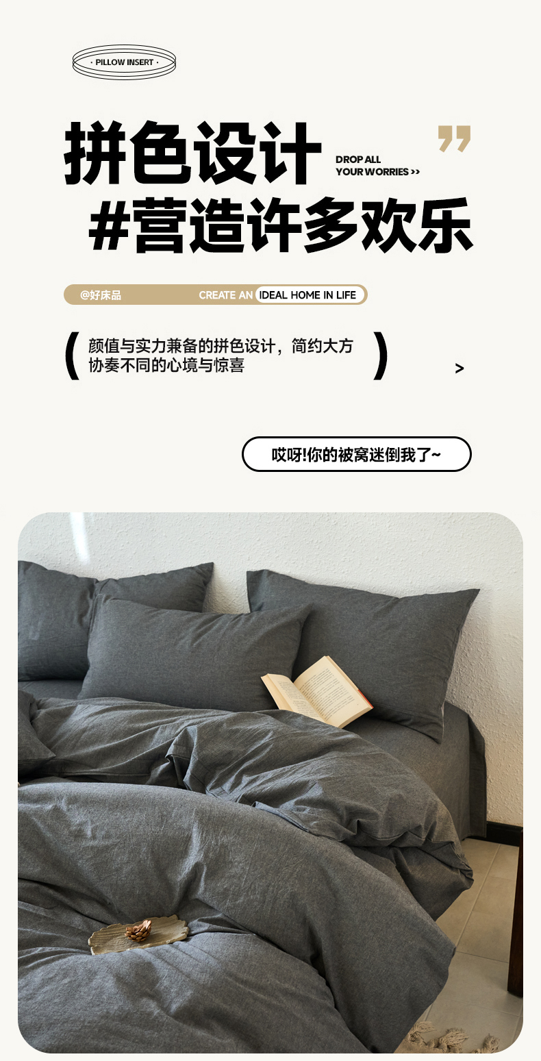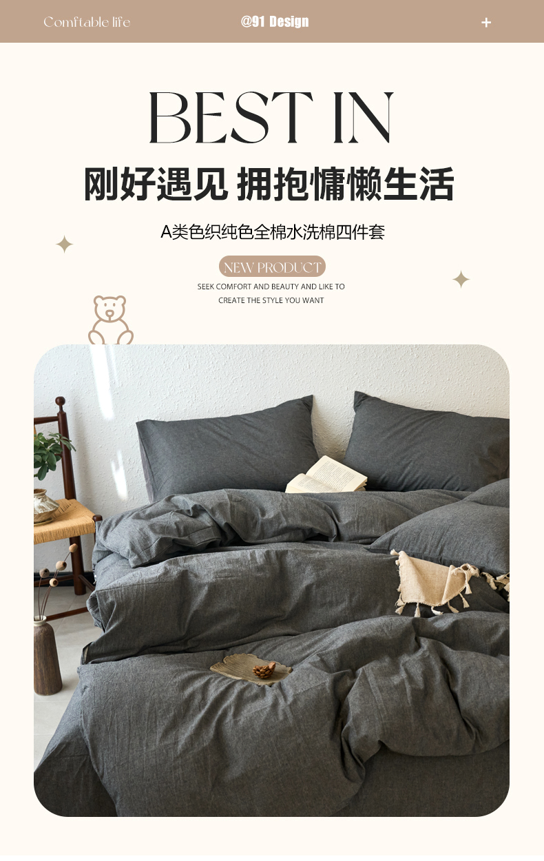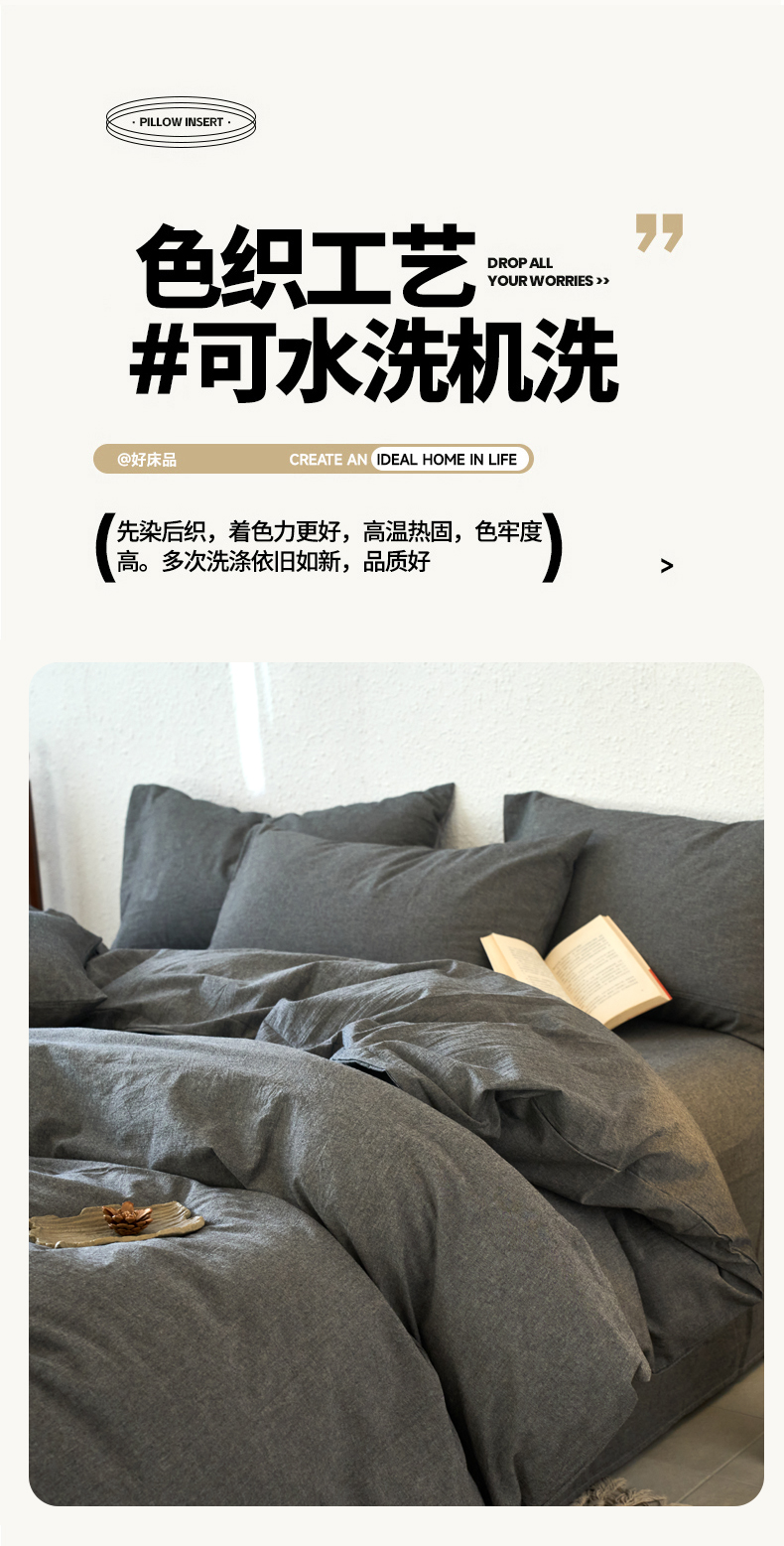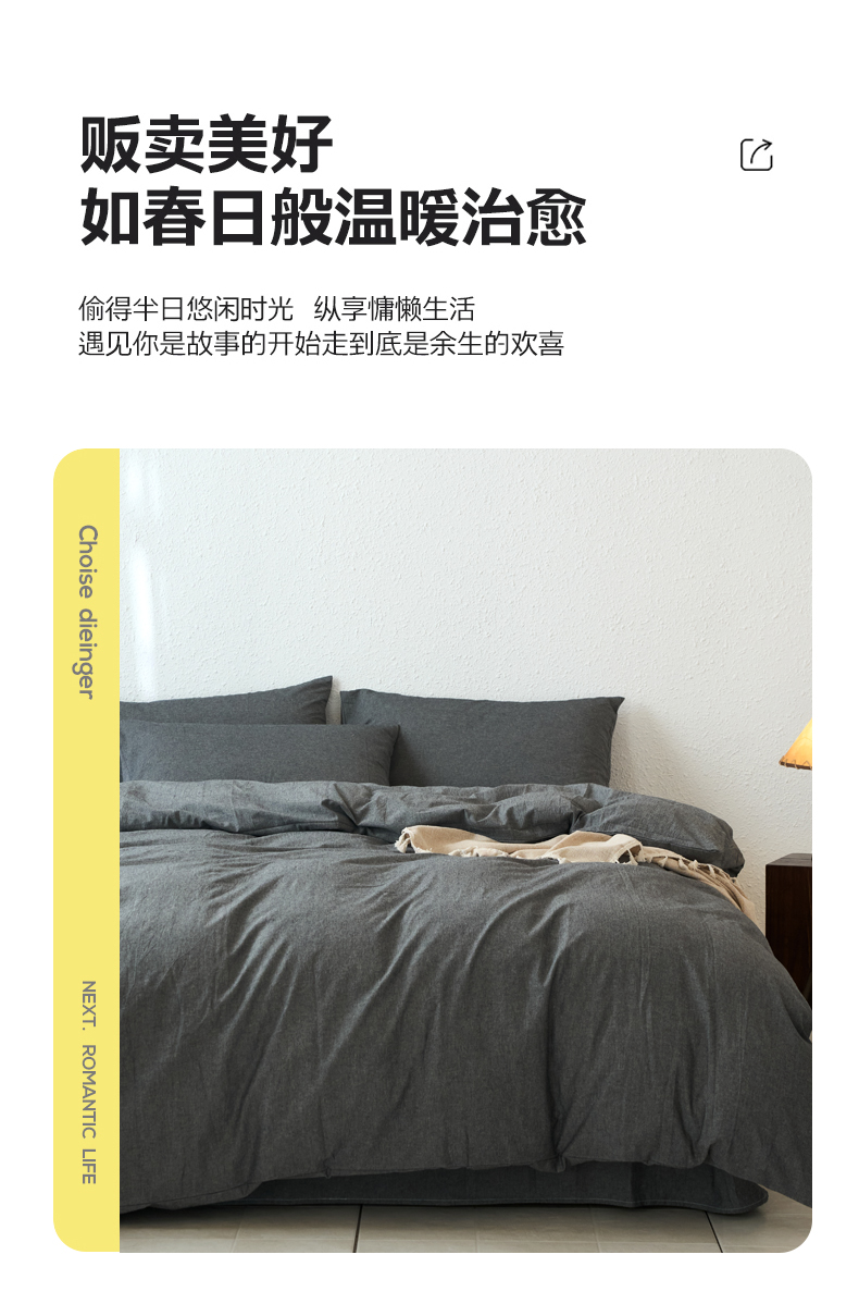 当前位置: 91家纺网 > 商品网购 > 床品套件 > 四件套 > 全棉普通四件套 > 兰紫橙家纺 2026新款A类色织纯色全棉水洗棉四件套 全棉水洗棉-月岩黑