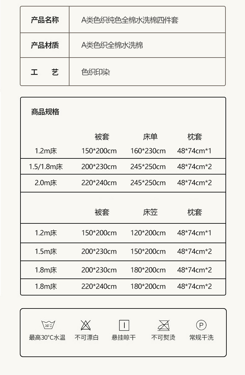 1.5m床笠款四件套 | ¥125.00 |