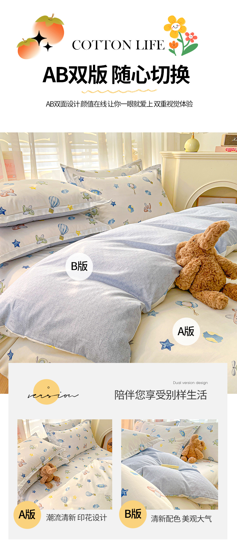 当前位置: 91家纺网 > 商品网购 > 床品套件 > 四件套 > 全棉普通四件套 > 珂博家纺 2026新款12868全棉纯棉小清新印花四件套 星辰大海
