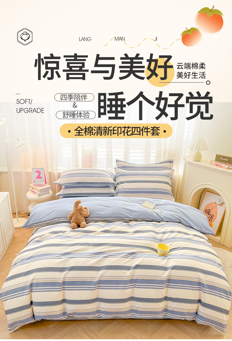 (总)珂博家纺 2026新款12868全棉纯棉小清新印花四件套,潮流前线,格调都市,星辰大海,青春律动,梦里繁花,曼塔罗,花枝印象,好柿发生,浪漫满屋,晨曦花露