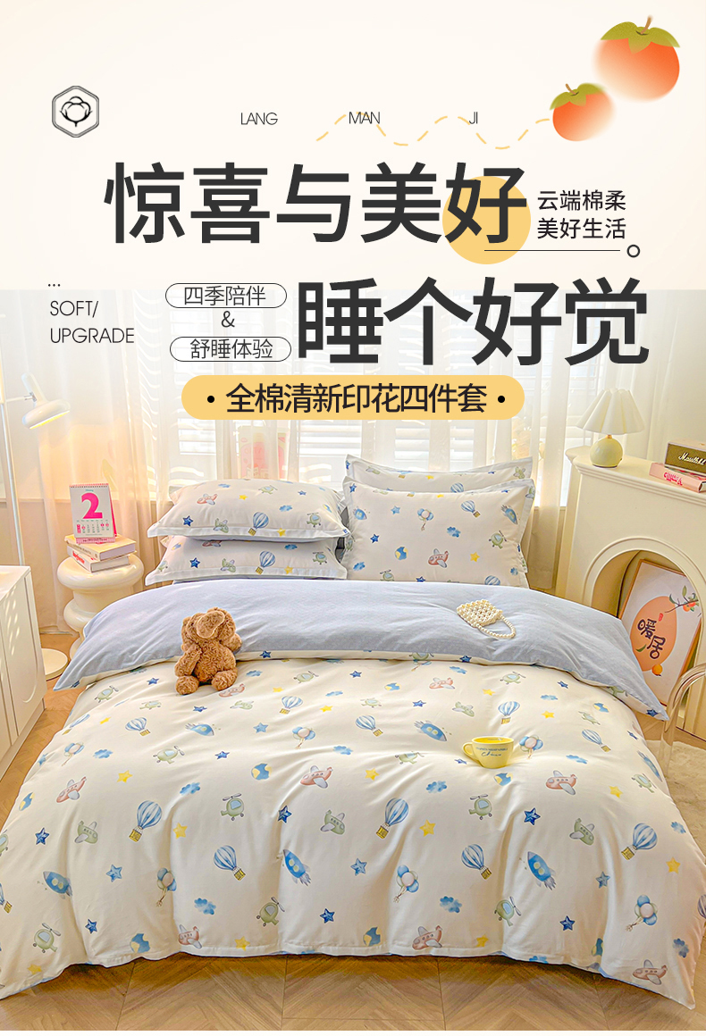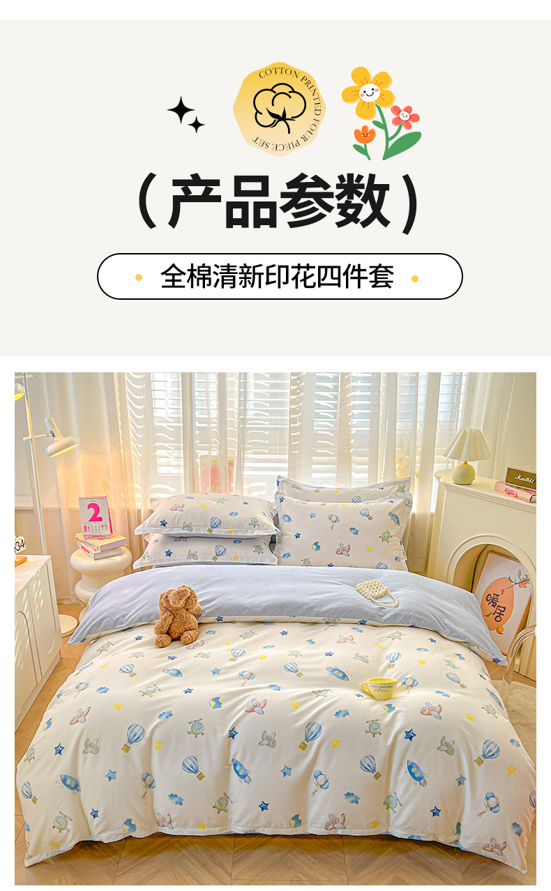 商品名称:珂博家纺 2026新款12868全棉纯棉小清新印花系列单品被套 星辰大海