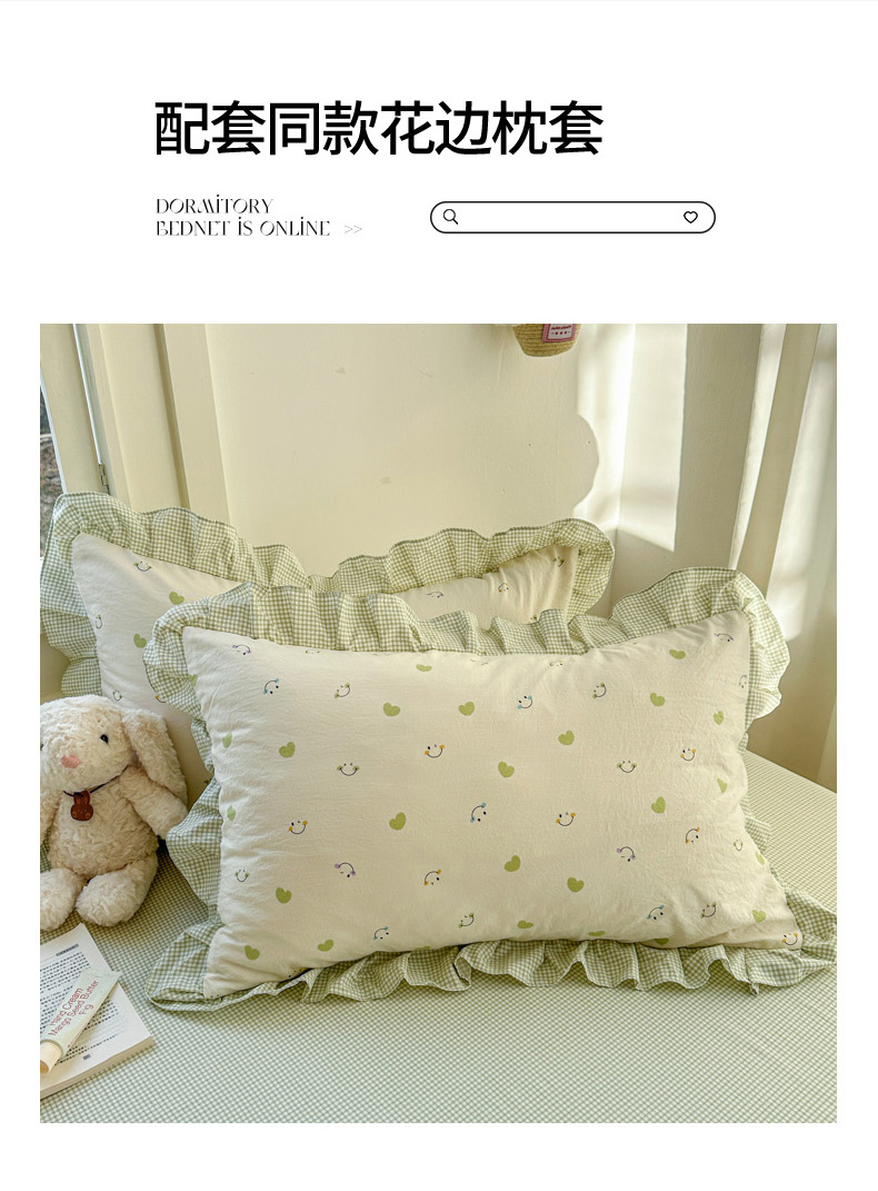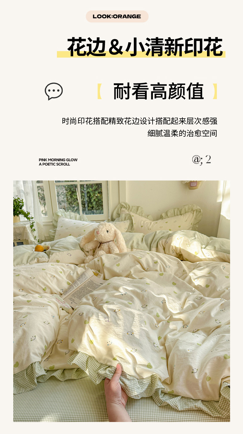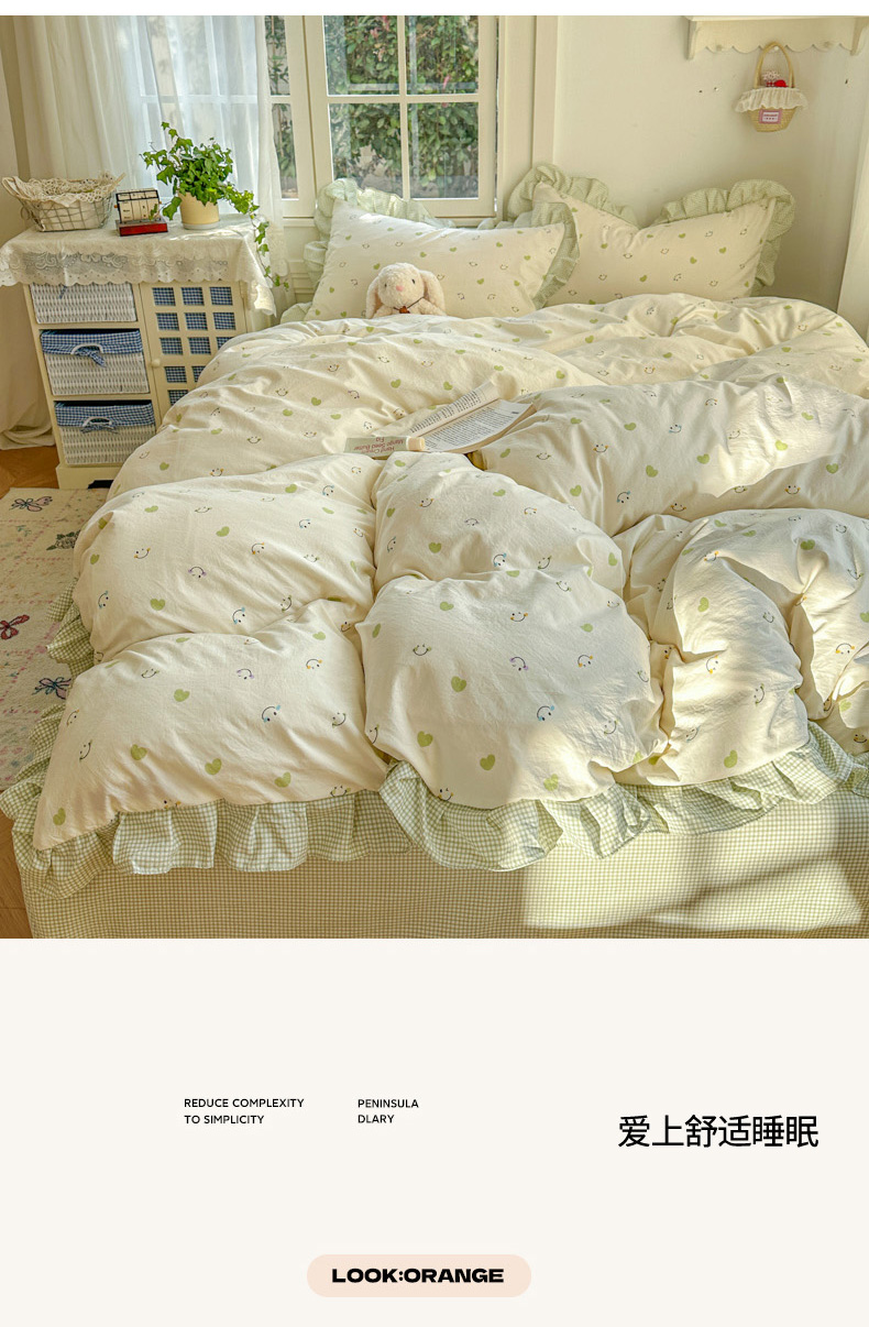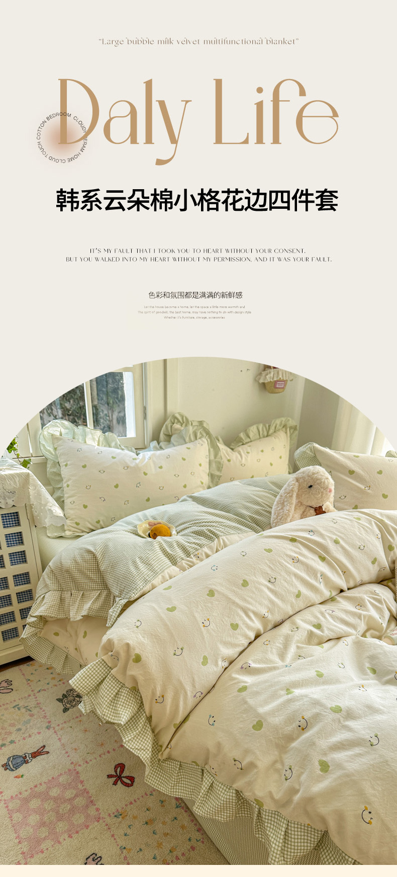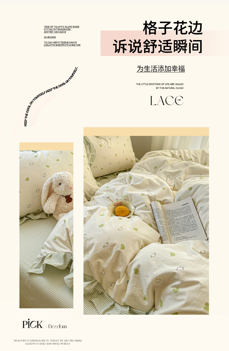 商品名称:柒月家居 2026新款韩系仿棉小格花边四件套 微笑