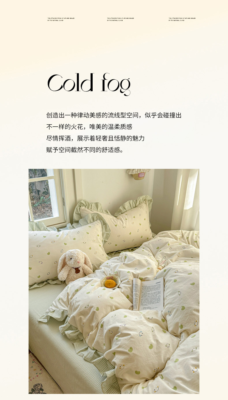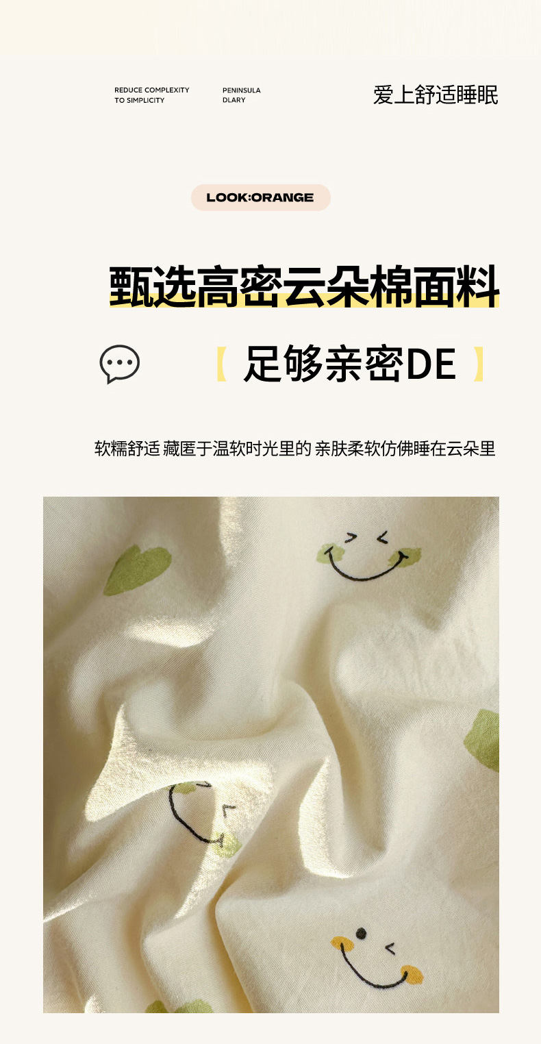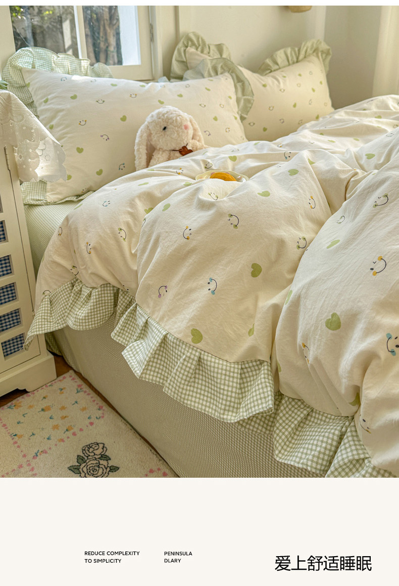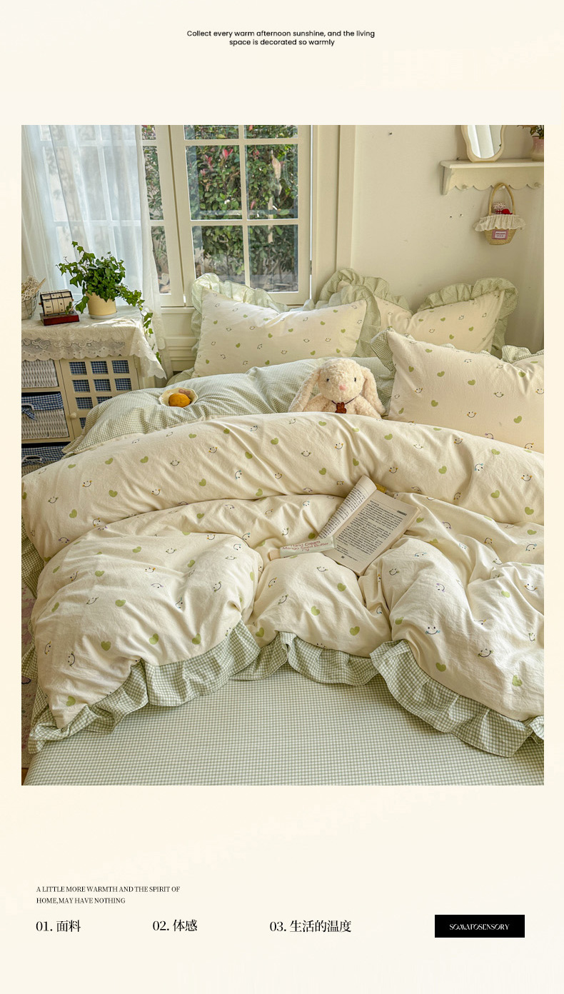 商品名称:柒月家居 2026新款韩系仿棉小格花边四件套 微笑