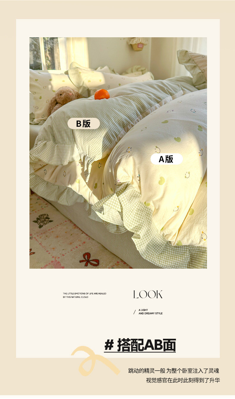 (总)柒月家居 2026新款韩系仿棉小格花边四件套,莓果,萌物,七分甜,甜桔,甜心狗,微笑,午后时光,线条猫,小柠檬,心愿狗,星星格,叶初开