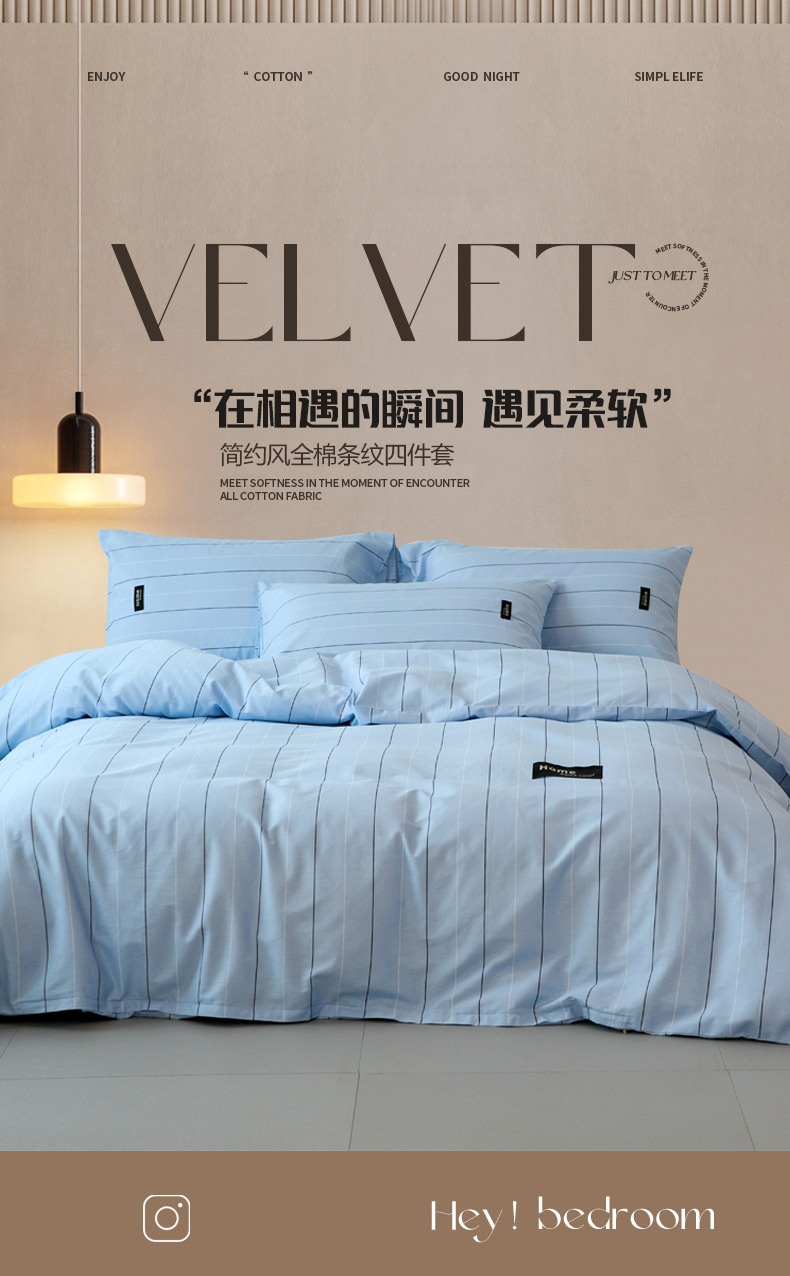 当前位置: 91家纺网 > 商品网购 > 床品套件 > 四件套 > 全棉普通四件套 > 兰紫橙家纺 2026新款简约风全棉条纹四件套 山奈