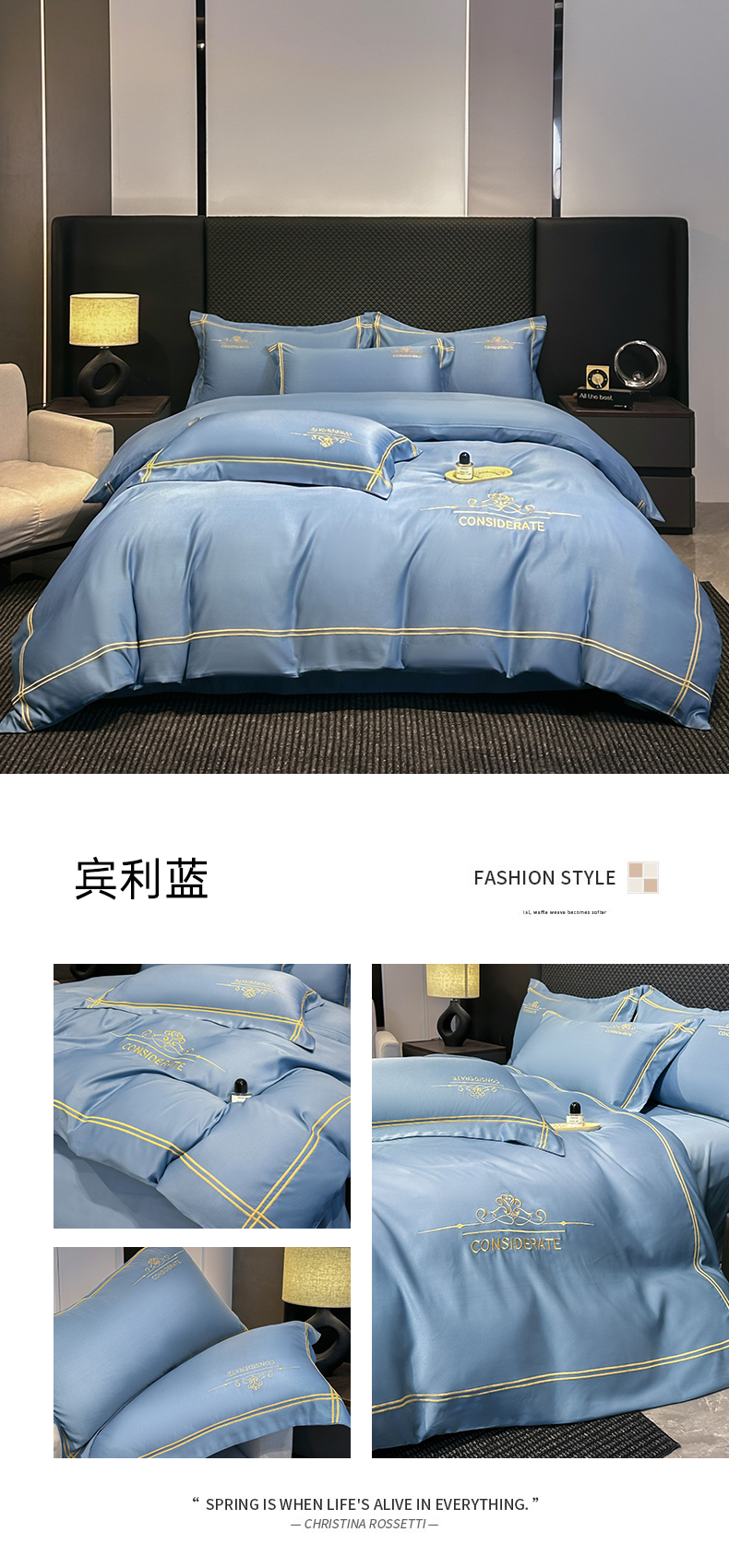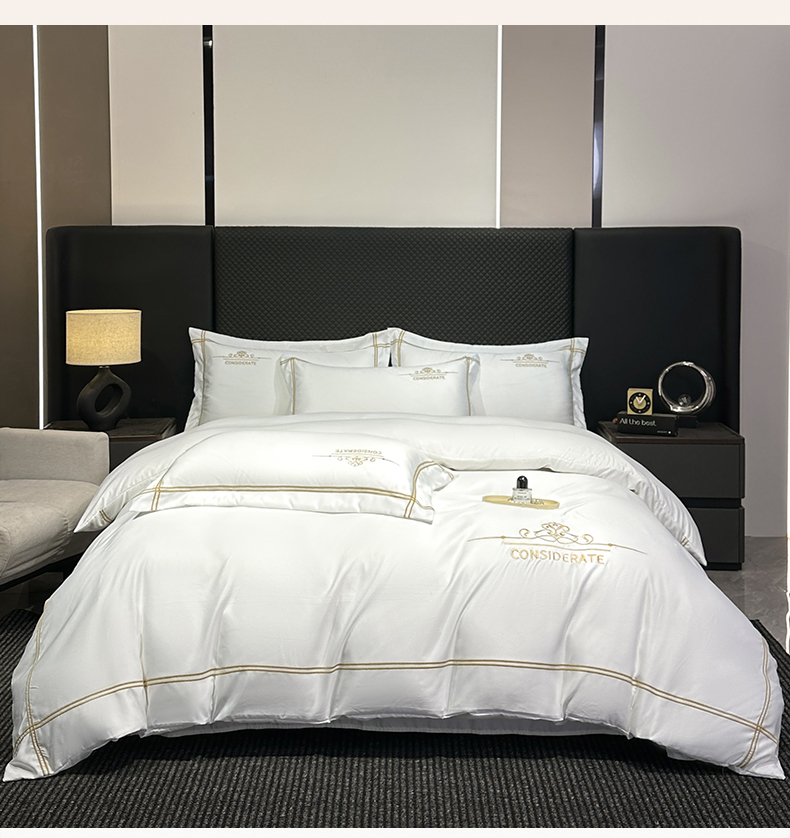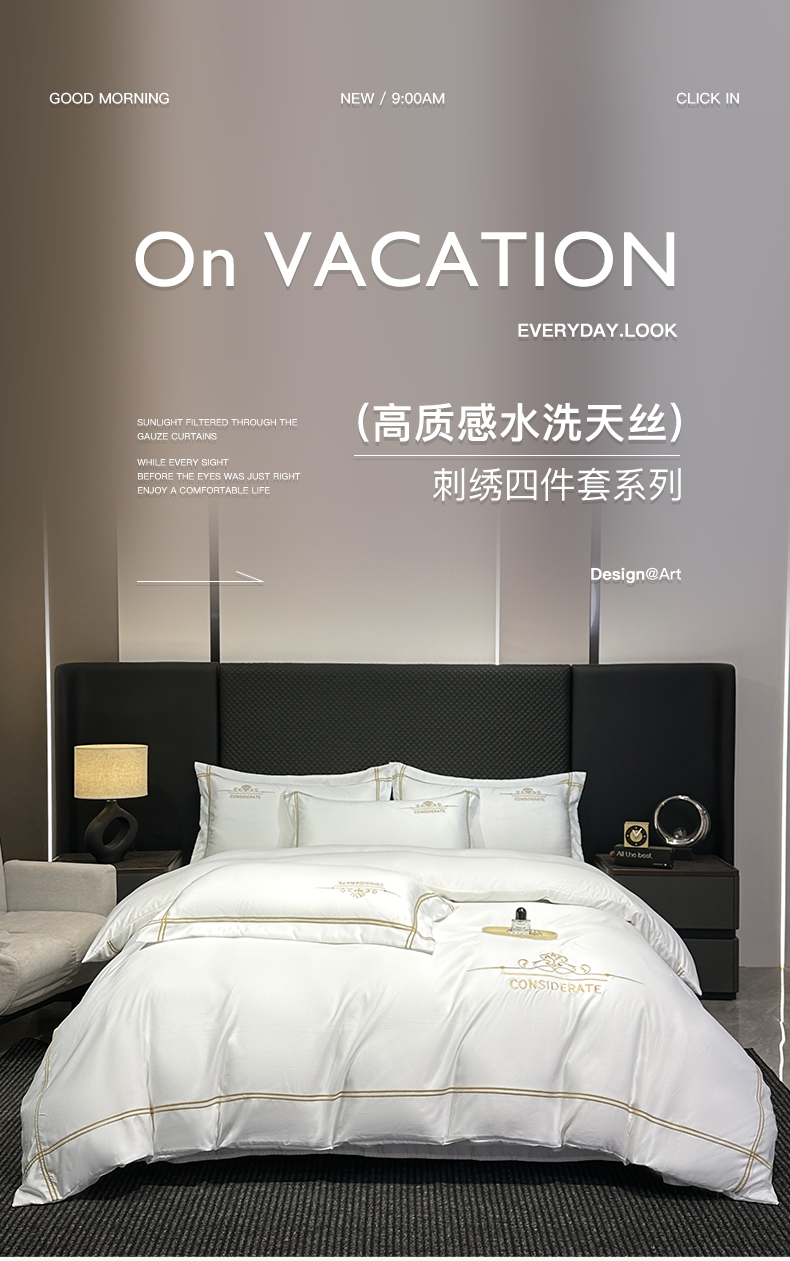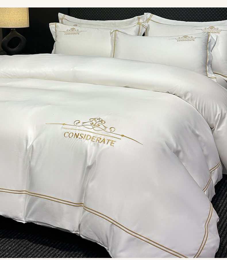 (总)绒掌柜家纺(品质焕新) 2026新款水洗真丝天丝冰丝刺绣四件套-典雅系列,宾利蓝,高级灰,墨绿,奶白,浅灰,少女粉,香槟,珍珠白