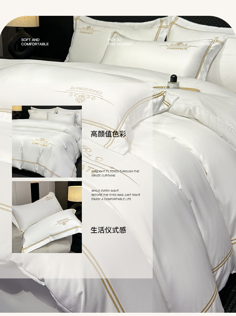 (总)绒掌柜 2025新款13376全棉纯棉刺绣四件套——版权产品(礼盒装品质含买家秀),高级粉,繁星蓝,奶白拼粉,奶昔白,香芋紫