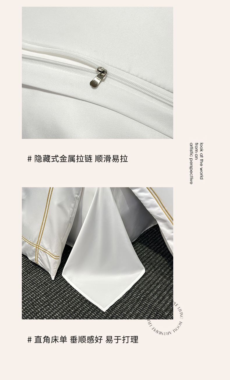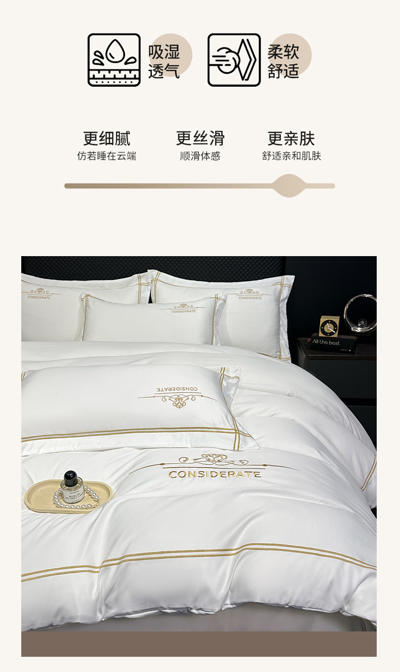商品名称:绒掌柜家纺(品质焕新) 2026新款水洗真丝天丝冰丝刺绣四件套-典雅系列 珍珠白