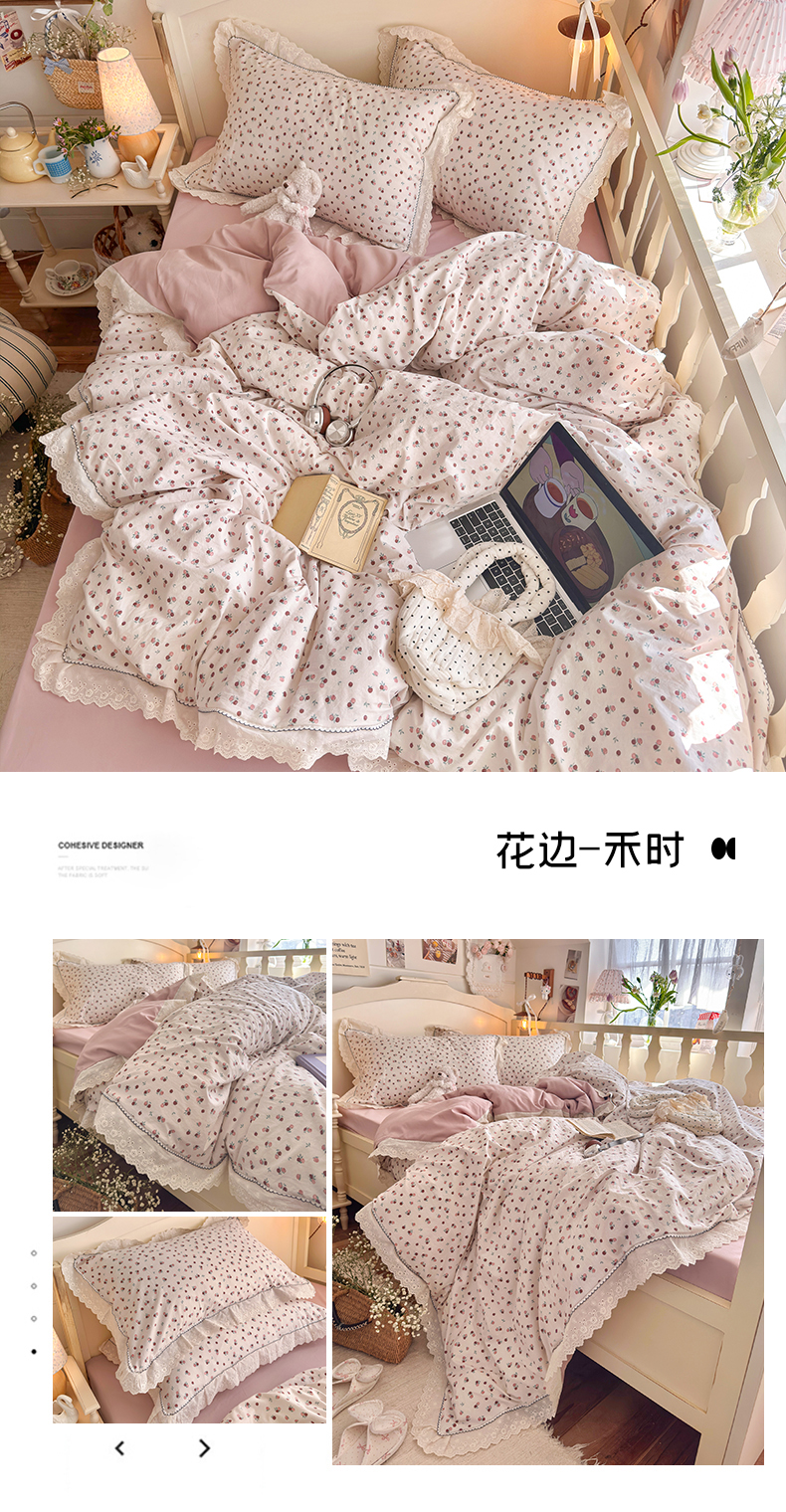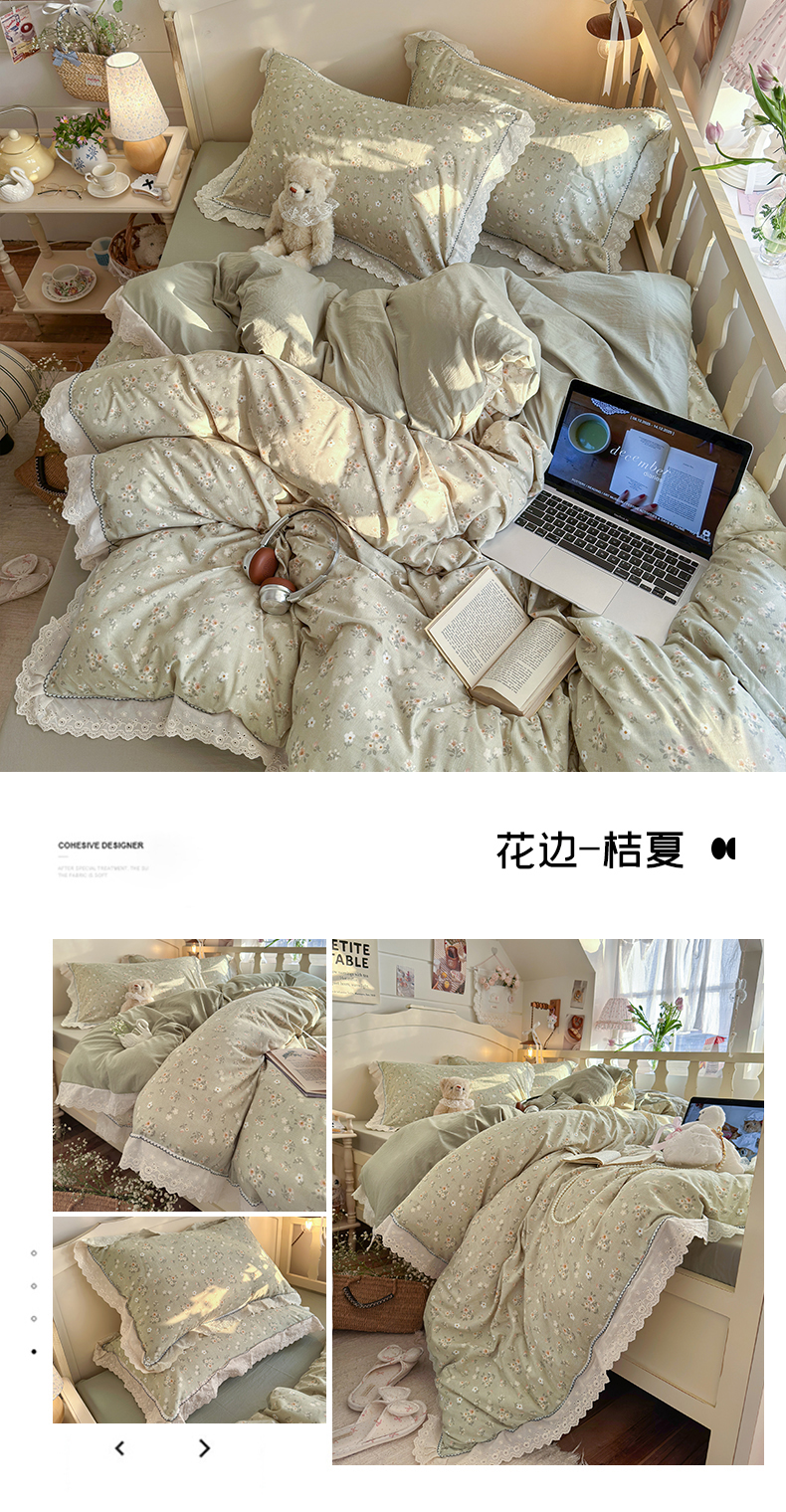 当前位置: 91家纺网 > 商品网购 > 床品套件 > 四件套 > 其它四件套 > 海岛哥哥 2026新款仿棉云柔纱韩版双花边四件套 花边-花影
