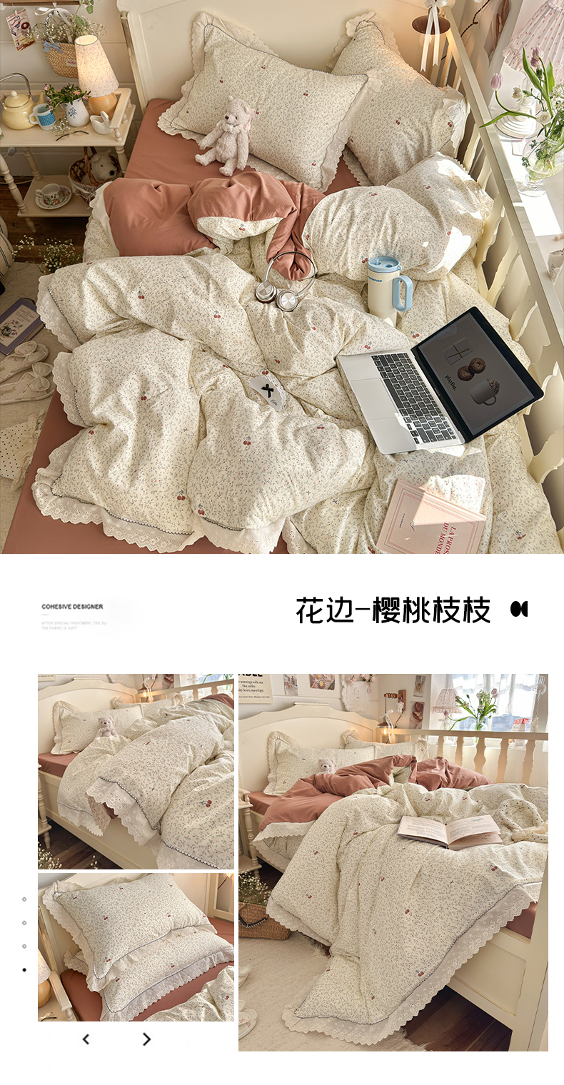 当前位置: 91家纺网 > 商品网购 > 床品套件 > 四件套 > 其它四件套 > 海岛哥哥 2026新款仿棉云柔纱韩版双花边四件套 花边-枝枝草莓