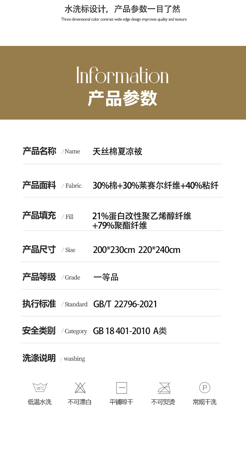 商品名称:盛凡家纺 2026新款A类天丝棉夏被被子被芯 玫瑰金