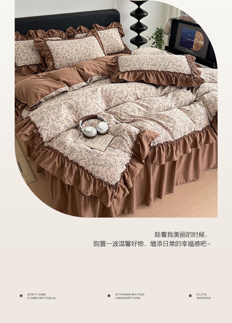当前位置: 91家纺网 > 商品网购 > 床品套件 > 四件套 > 双层纱四件套 > 富米莱(原臻工厂) 2026新款敲可爱奶呼呼云感双层纱韩国大布袋韩版大花边床盖床裙四件套-超级治愈 七宝